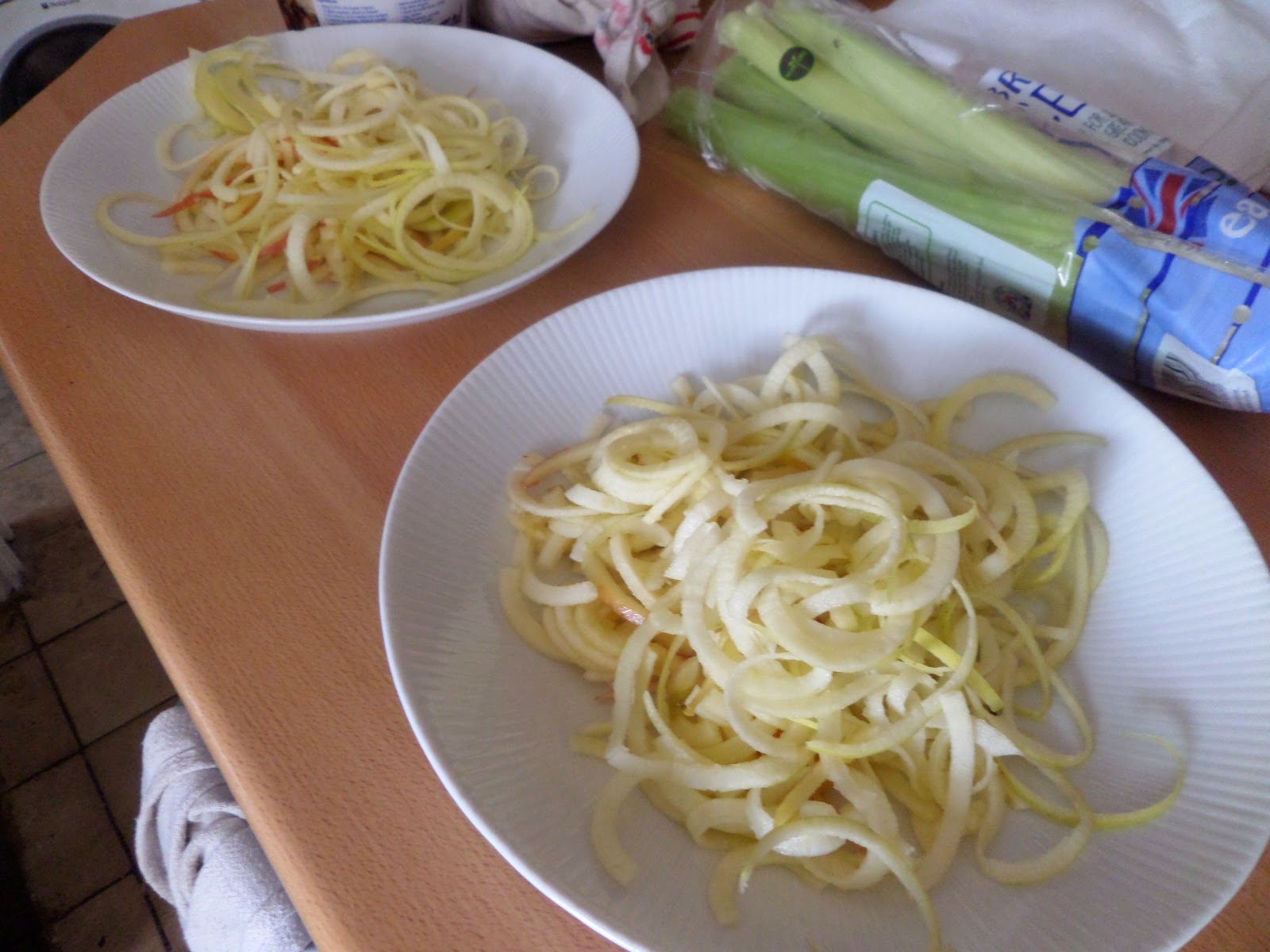 Today I’m going to use it to make a Waldorf Salad; specifically I’m going to spiralise the apple to make a bed for the celery, walnuts and grapes to go on, and serve with a fat-free yogurt and crumbled blue cheese dressing.