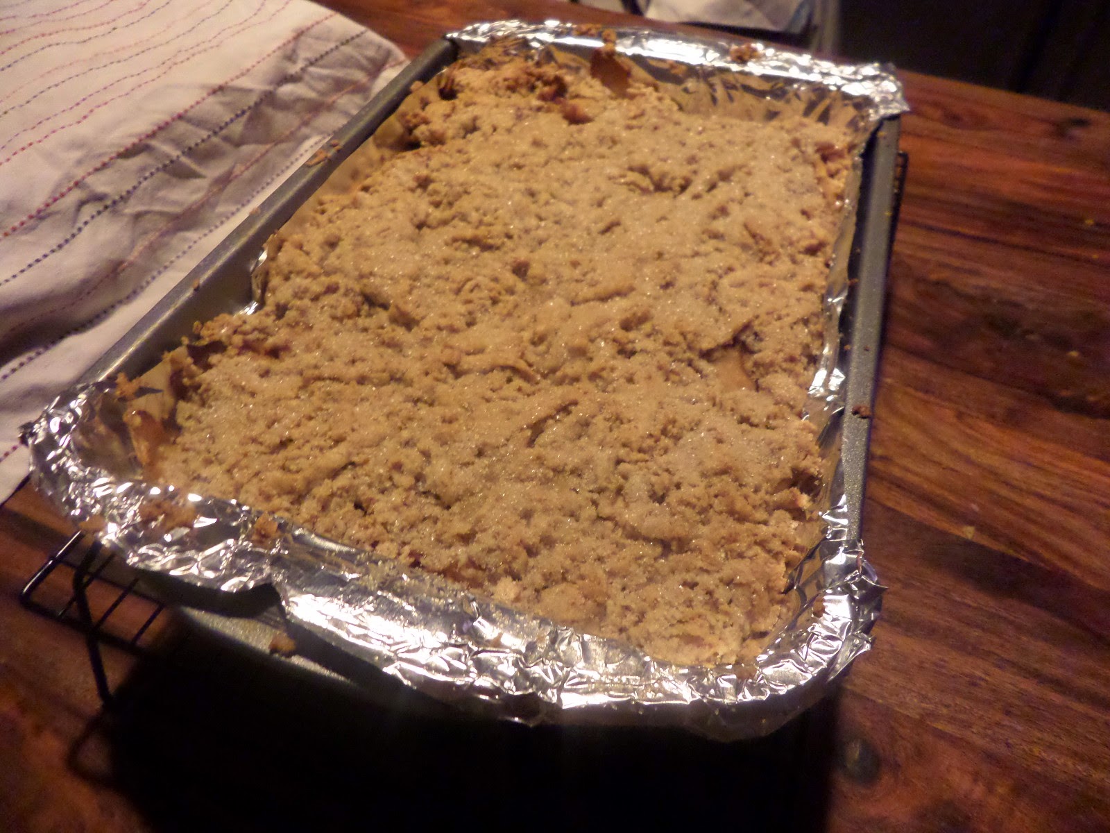 Without a plan we scouted out what we’ve got lying around in the kitchen, and while there are lots of lovely dried fruits and nuts, they’re not going to go off like the apples might, so I searched my spreadsheet of things to try baking and found this Polish apple cake which we originally saw in BBC Good Food magazine.