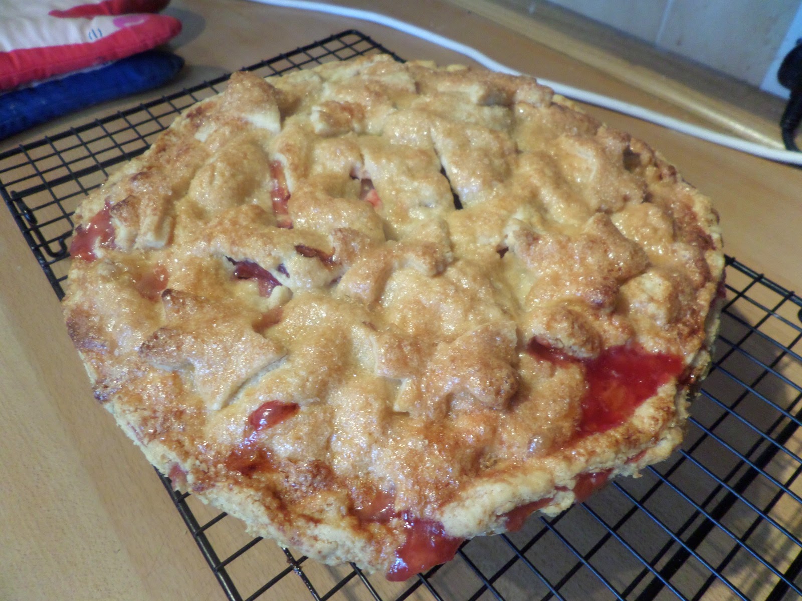 Then it cools on a wire rack for four hours. FOUR HOURS!? Actually as it happens that’s a perfect time to have for pudding. In the meantime we’ll have to wait as it wafts its fresh pie smell, cartoon style, through the house.