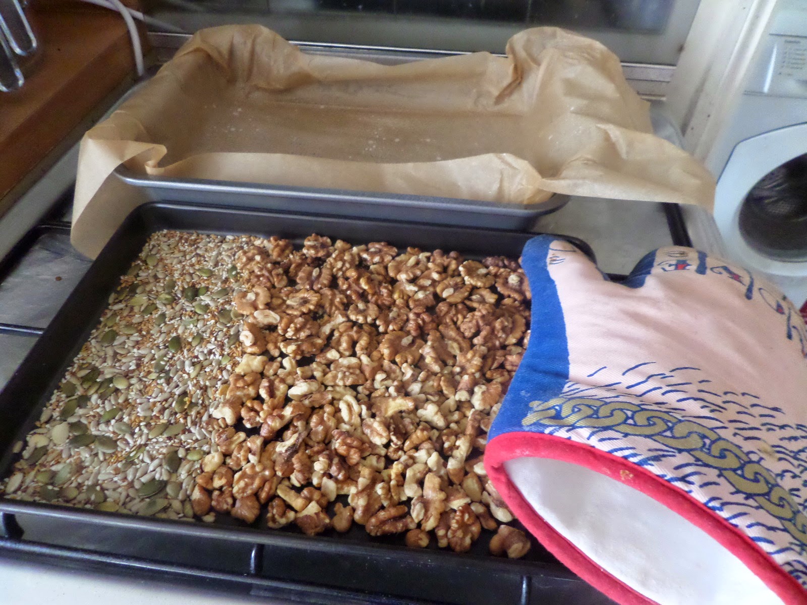 I’ll start by toasting the seeds and nuts, then basically mix it all together and bake for 20 minutes at 160C fan.