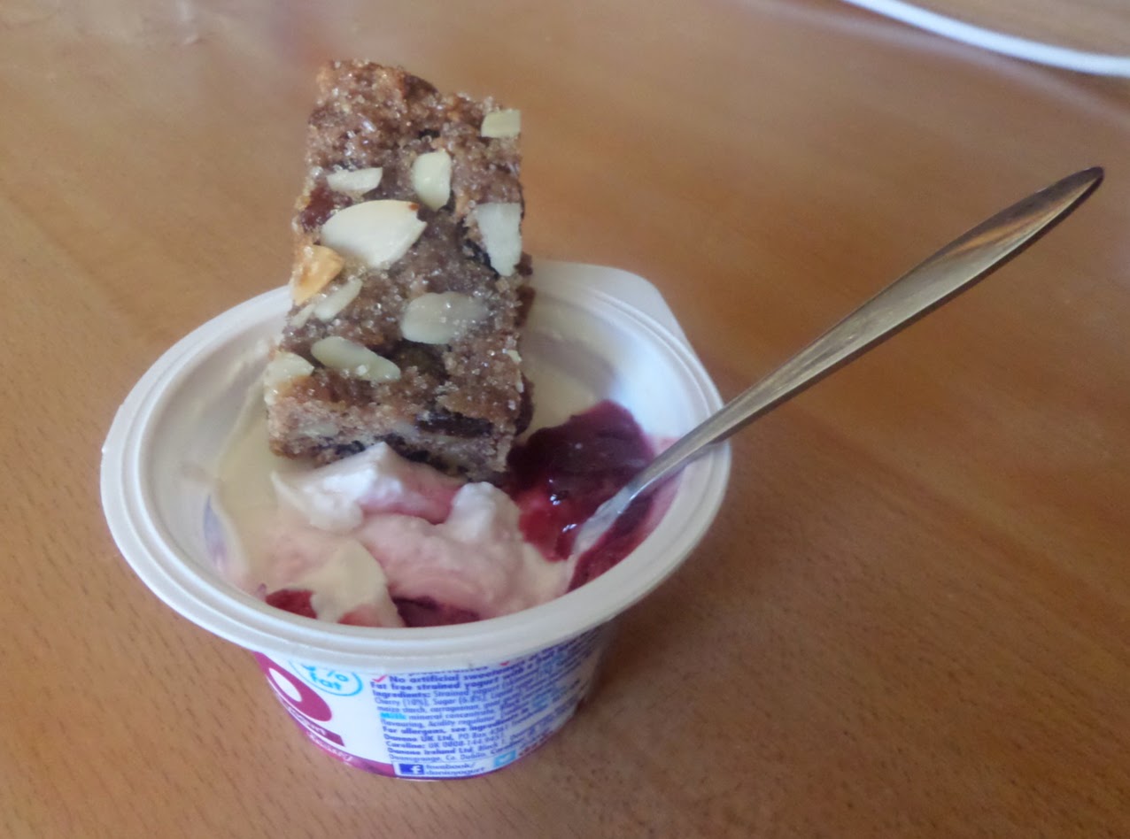 We found the best way to eat it was dipped into 0% fat Greek yogurt: more pretence that it’s all very healthy!