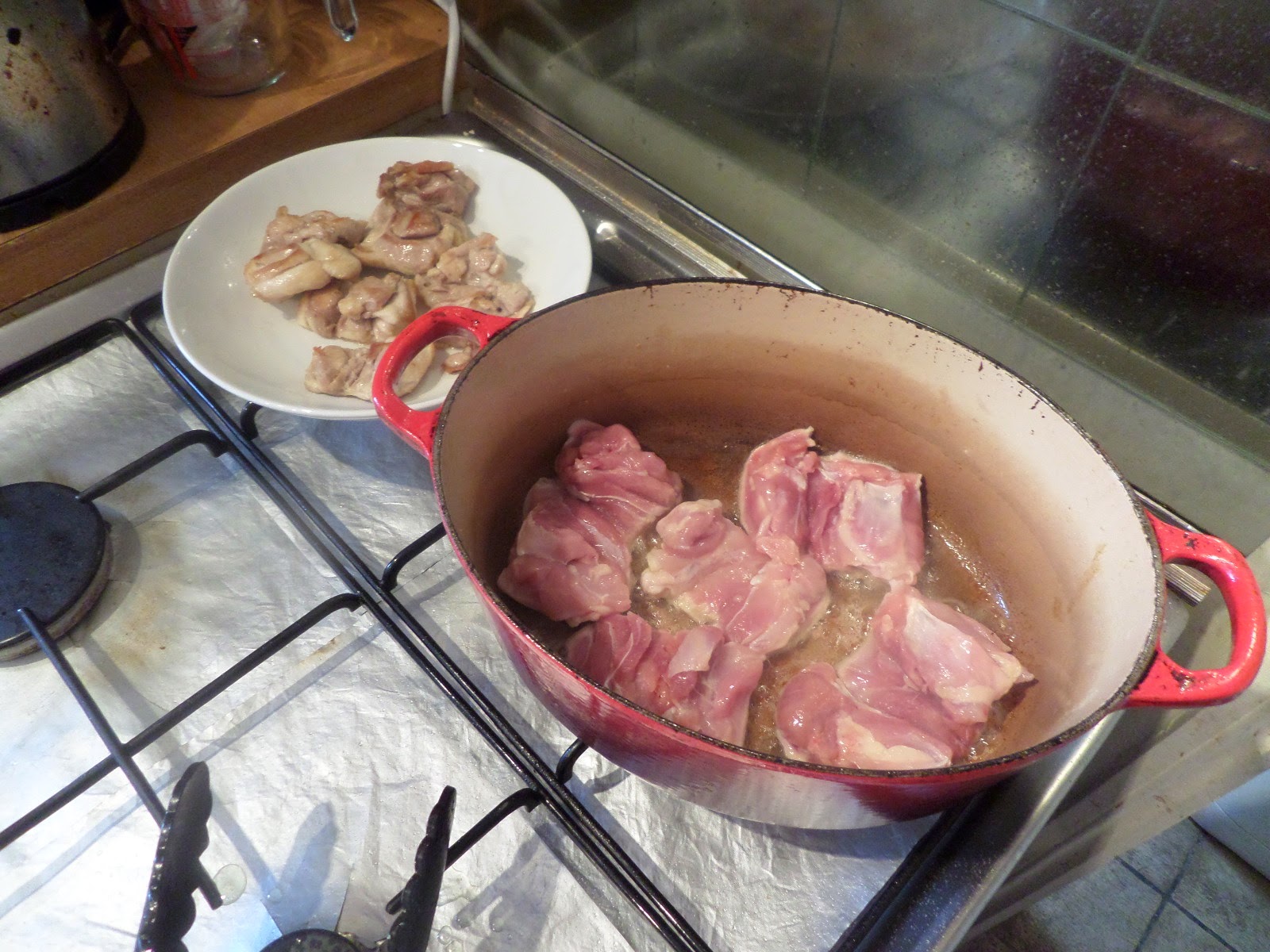 As for the pie… it’s not a quick pie! Starts with browning the chicken thighs.