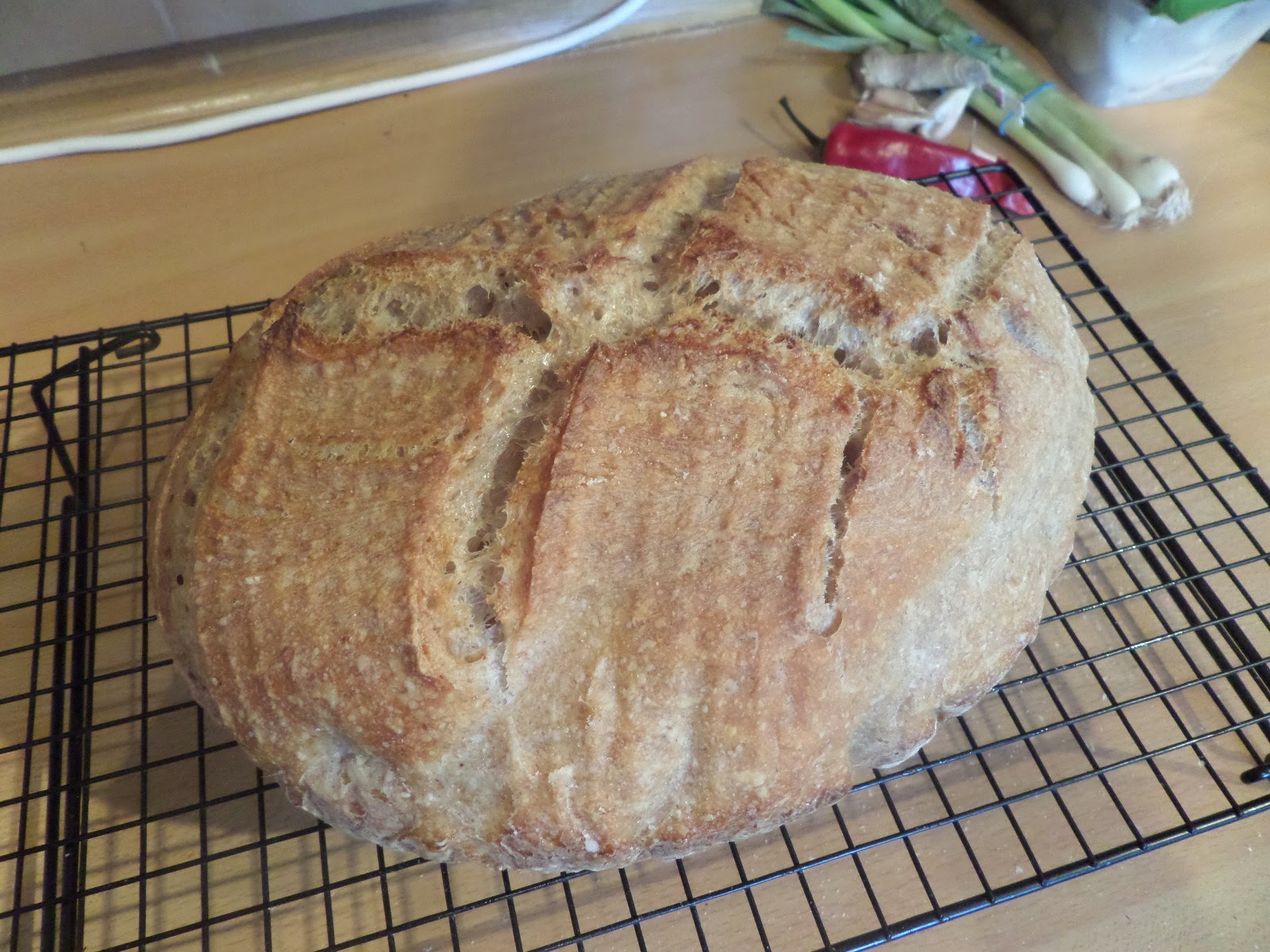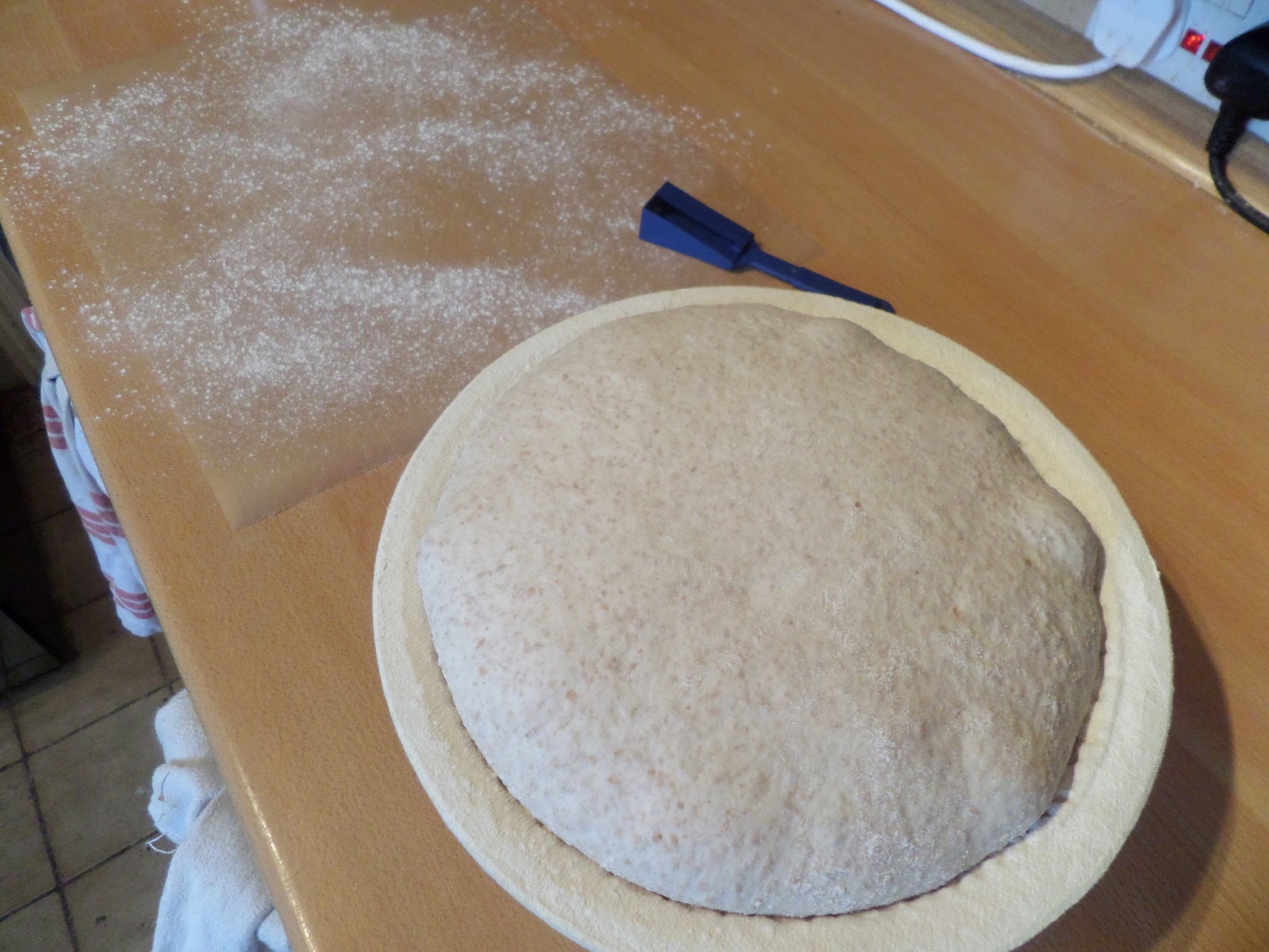 I’d already decided to add a bit more liquid to my dough, bringing it up from 60% to 68% hydration, by adding the same amount of water as I do starter. This isn’t that high, but I’d been making it rather dry to ensure it wasn’t too sticky when proofing it. However I’ve discovered that as long as you flour the dough properly (not just the banneton) before proofing it’s not a problem.