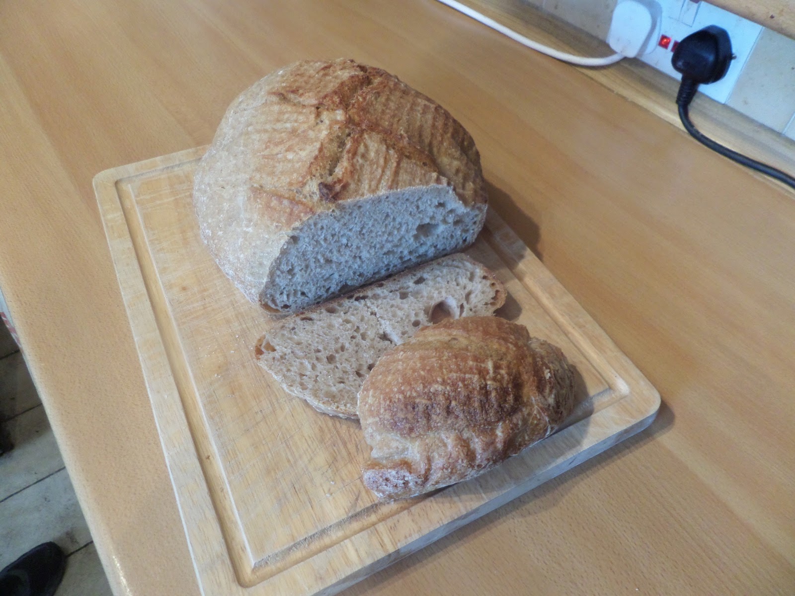 Taking it out is still fiddly: I think I need a longer parchment sling. However once it’s out I realise it’s much higher than previous loaves, which is great!