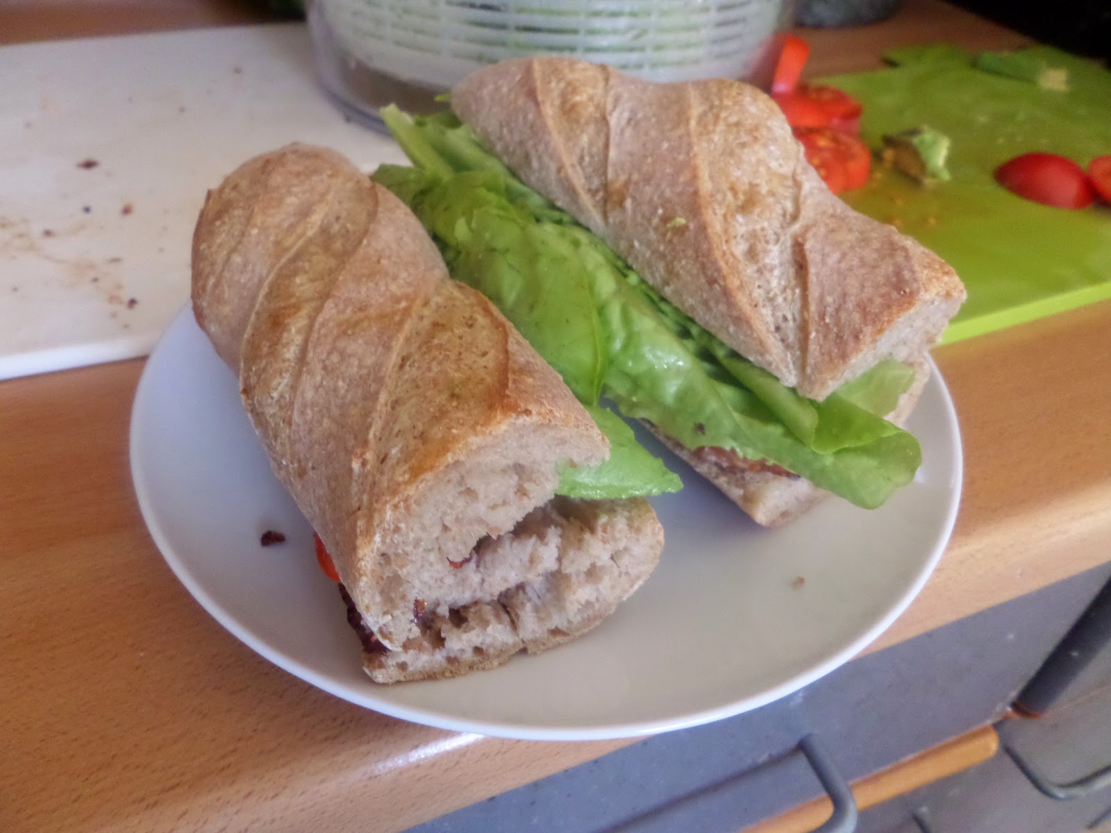 While still warm we’ll eat them as BLATs — Bacon, Lettuce (from the garden), Avocado and Tomatoes (also from the garden).