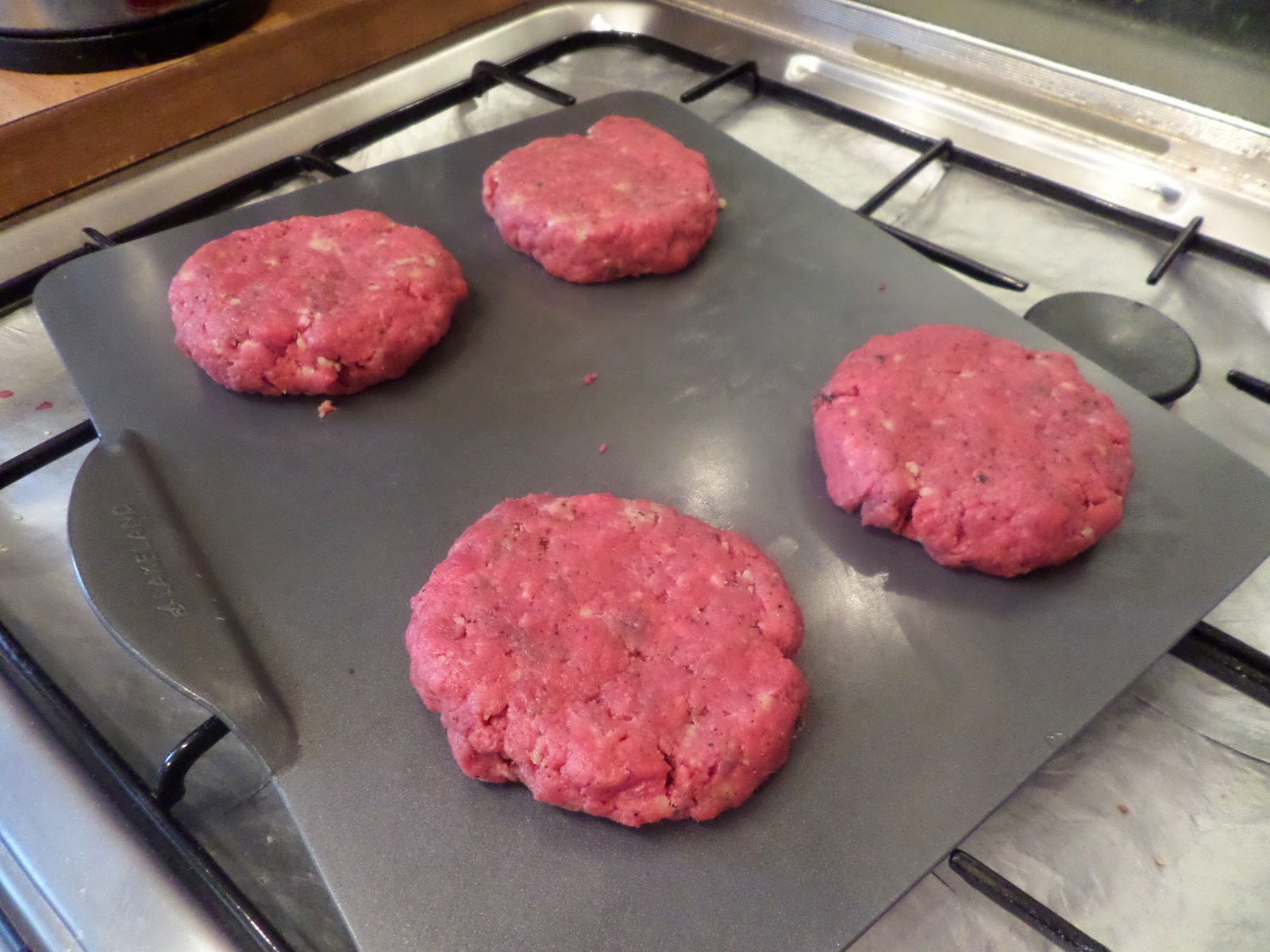 Despite the technically-medium cooking, they tasted like they were rare: really juicy and meaty. I guess using rump steak rather than cheap mince has its advantages!