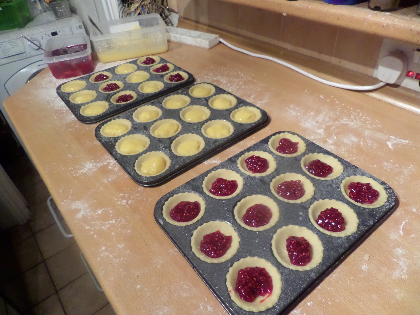 Cooking three trays at once, with two different fillings was tricksy. The lemon curd ones seem to take much longer, and we ended up with times between 18 and 24 minutes, and even then some of the lemon curd ones were flimsy and they ended up going back in the oven after cooling. To be honest it might warrant blind baking for lemon curd in the future — which might be considered too much effort just for some tarts!