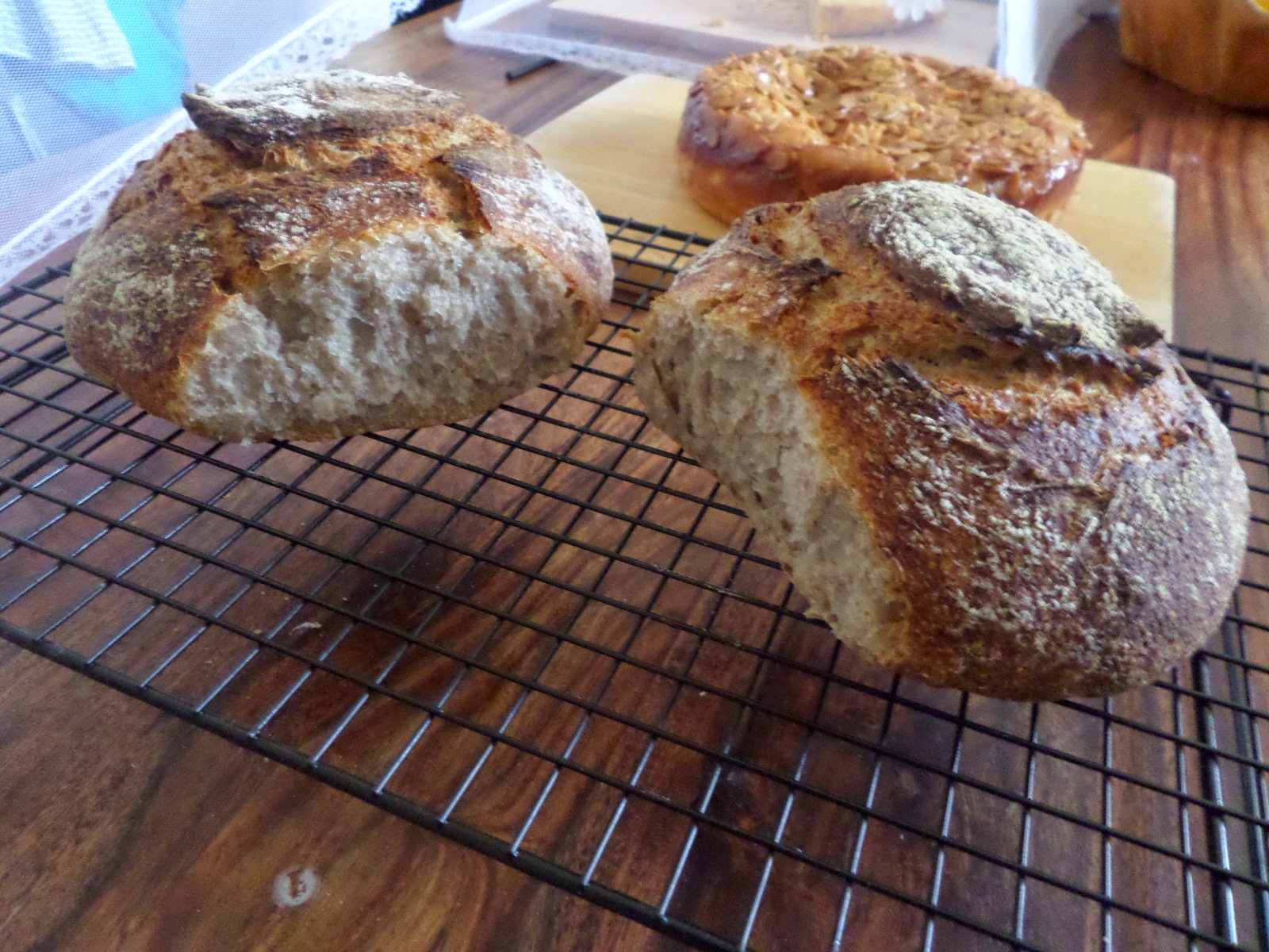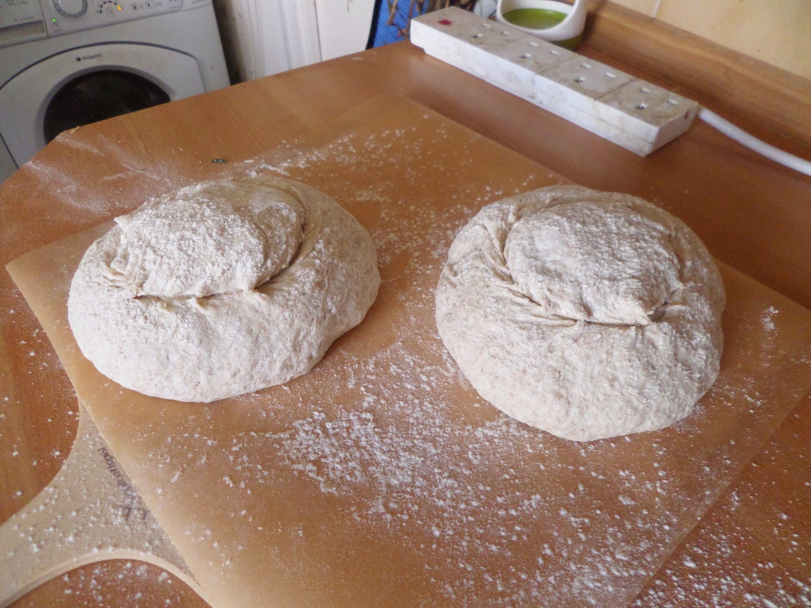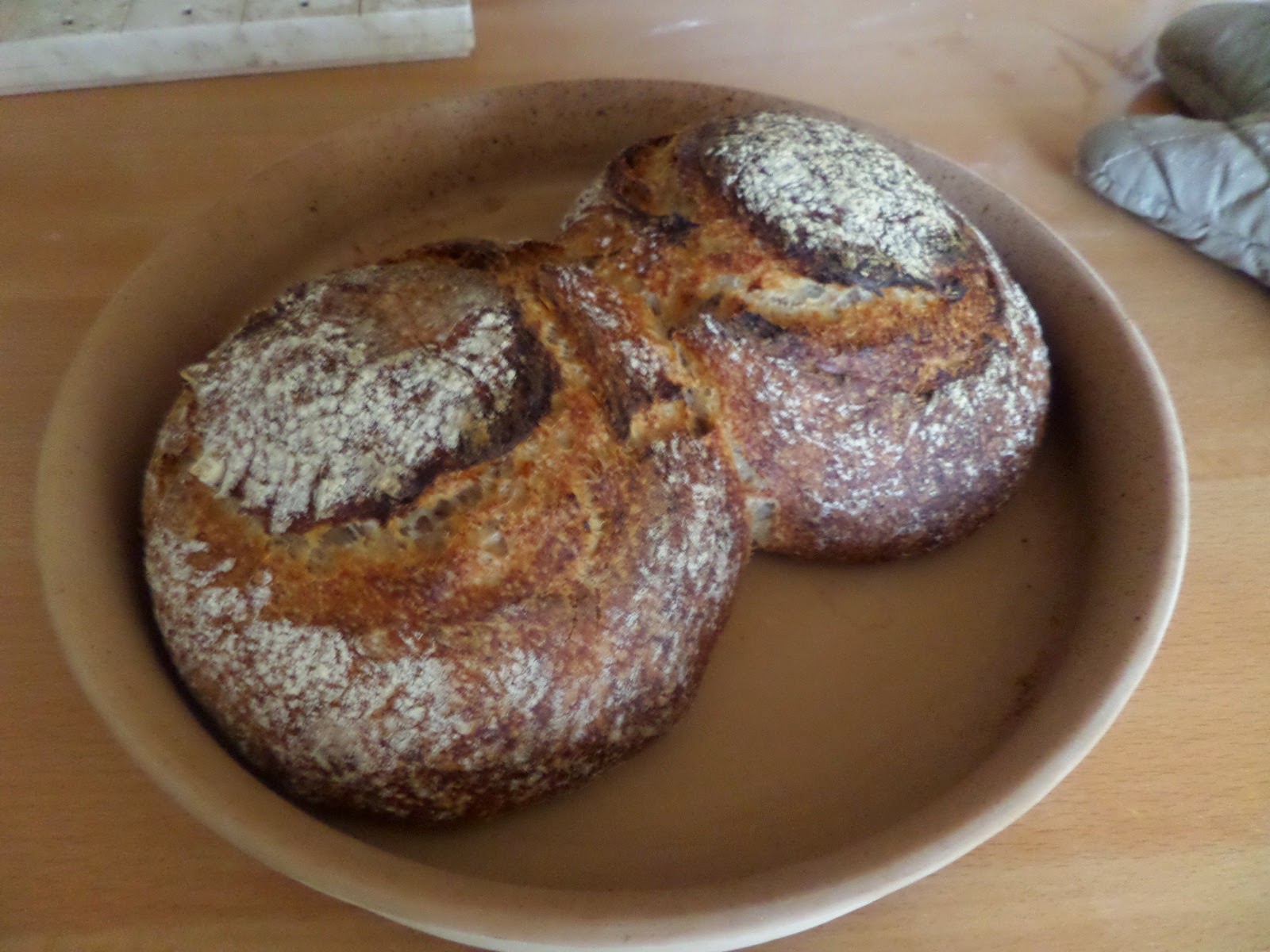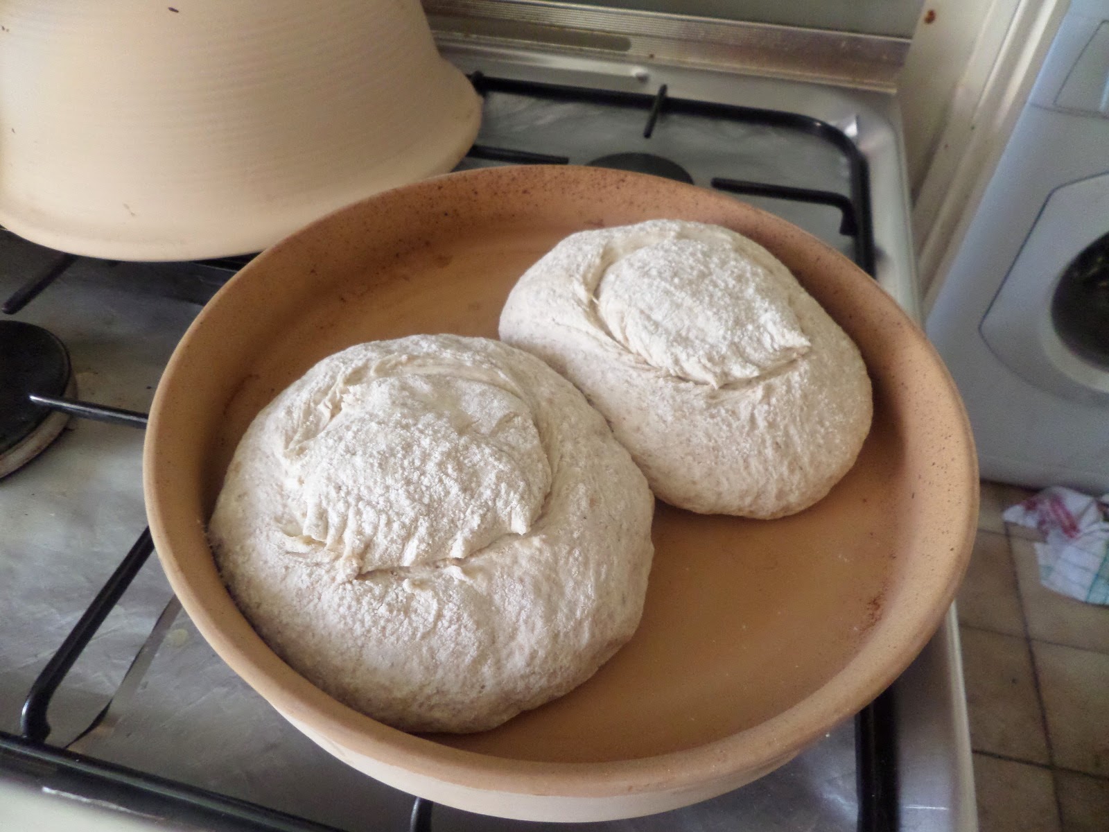 On Sunday I’ll cook in the La Cloche. I’ll score the tops in a circle, hopefully giving us an easy lid to remove to make the bread bowls. Also as we want crusty buns, we’ll keep the temperature at maximum after the top comes off.