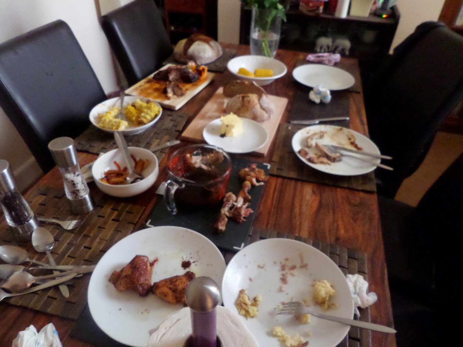 For veg we’re having corn on the cob, plus carrots & parsnips (mostly from the garden) roasted in maple syrup.