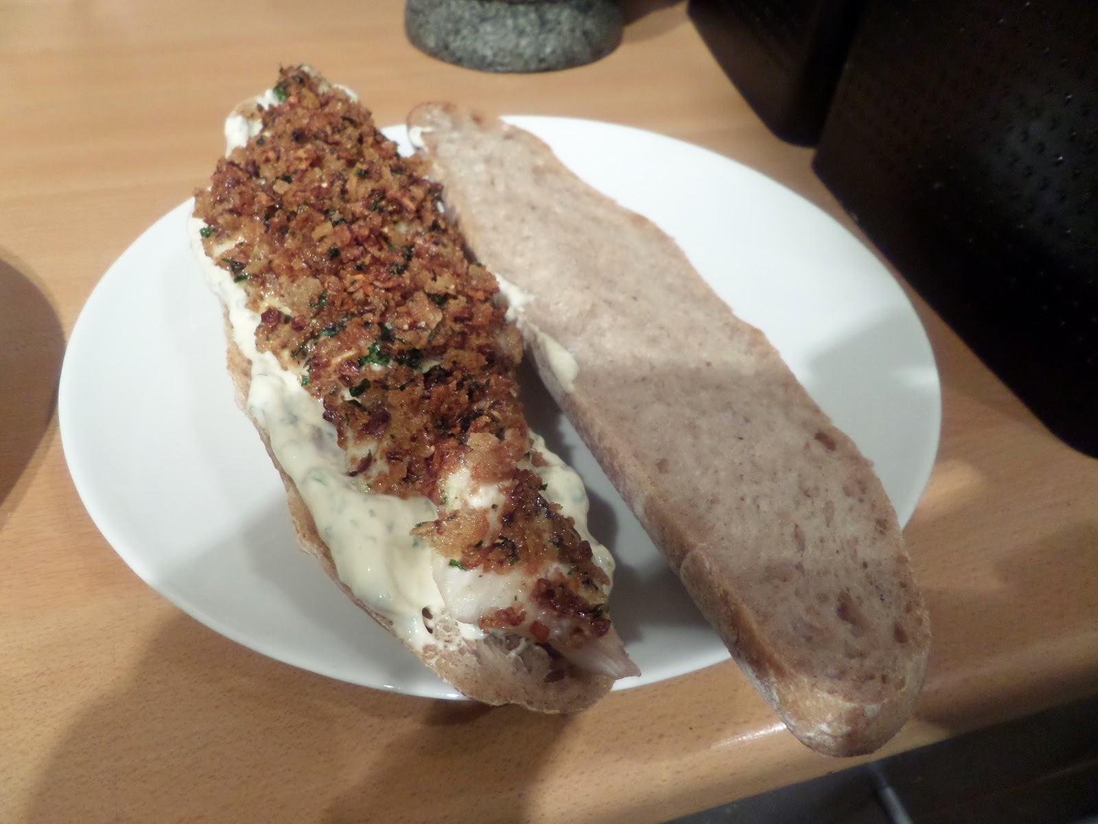 I fancy a fish finger sandwich. But not frozen fish fingers on crappy white sandwich bread. No: I fancy an over-the-top artisan one.