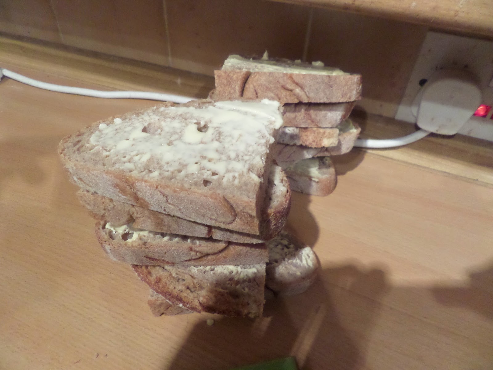 Obviously it’s supposed to be stale bread for this sort of thing… but we don’t do daily bread, so I made a loaf and toasted it in the oven, then buttered it.