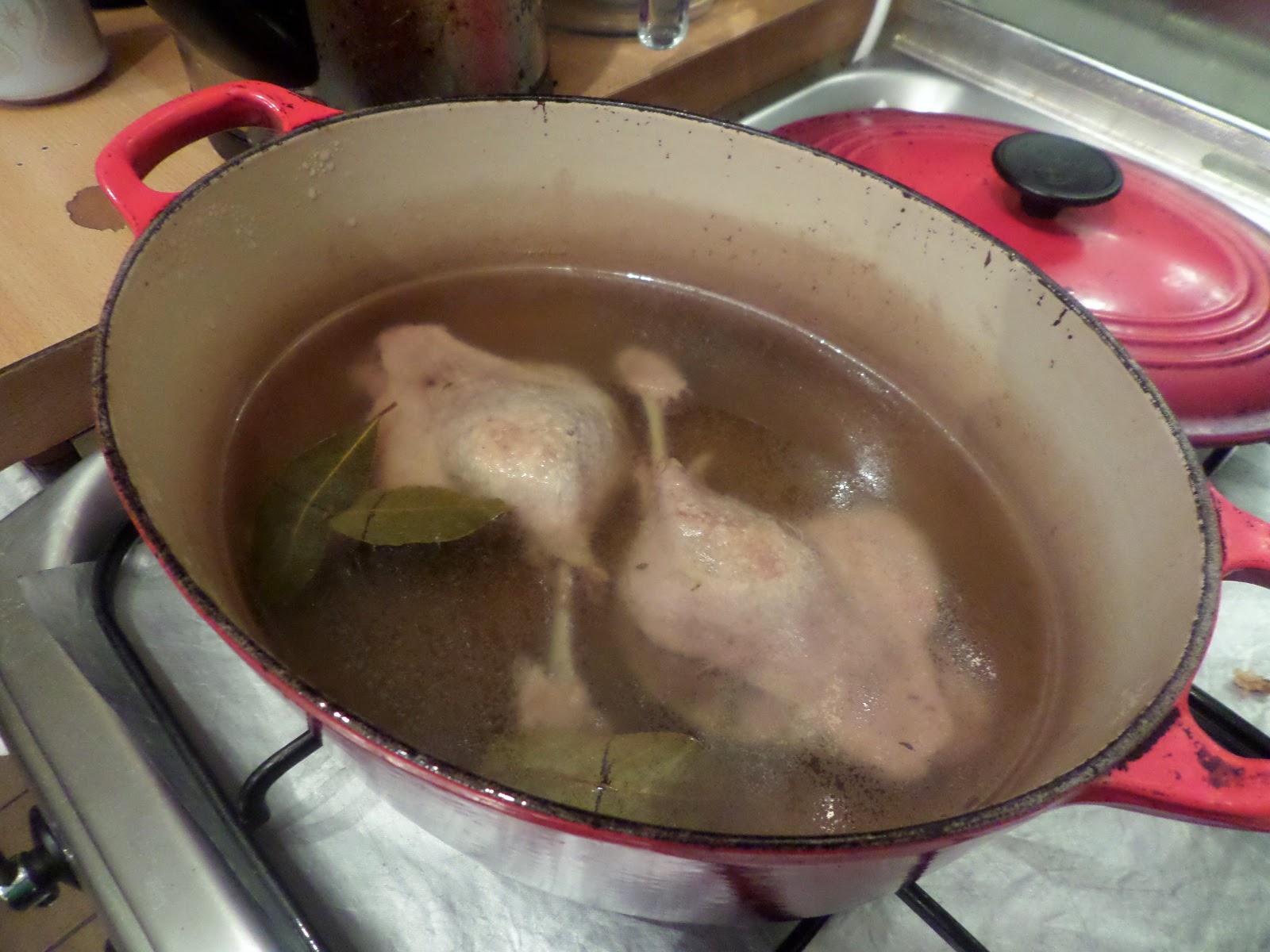 So: finding duck fat isn’t easy; not something your average supermarket carries. Goose fat yes, duck fat no. But I found some at a butchers near work… but I didn’t buy enough to cover the duck, so Soph kindly popped to the local Budgens where they have gooose fat and we topped it up with that.