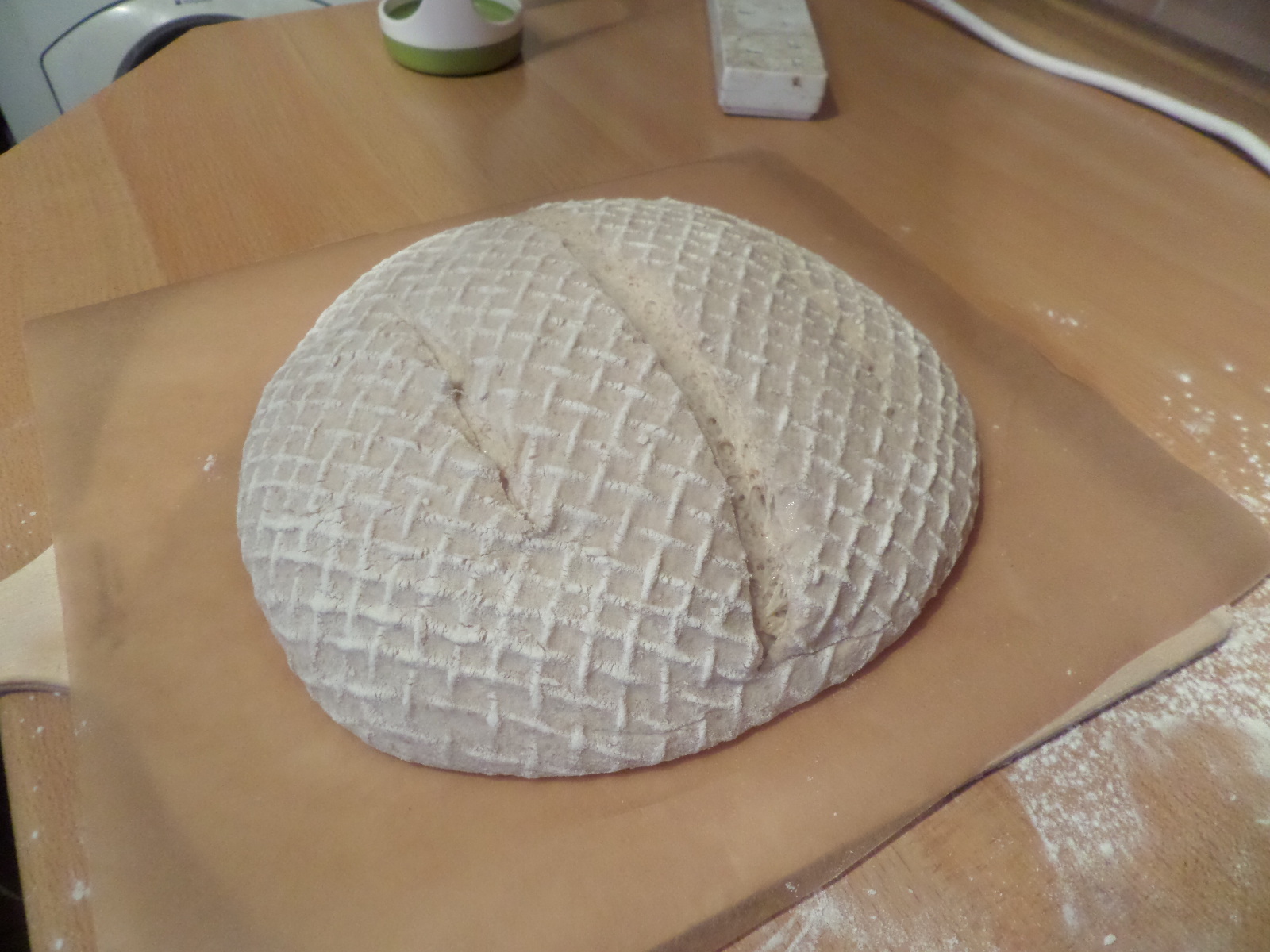 It was, unsurprisingly, a wetter dough during bulk fermentation, but it had stiffened up well by the fourth stretch and fold. After proofing it didn’t look any different from my previous version.