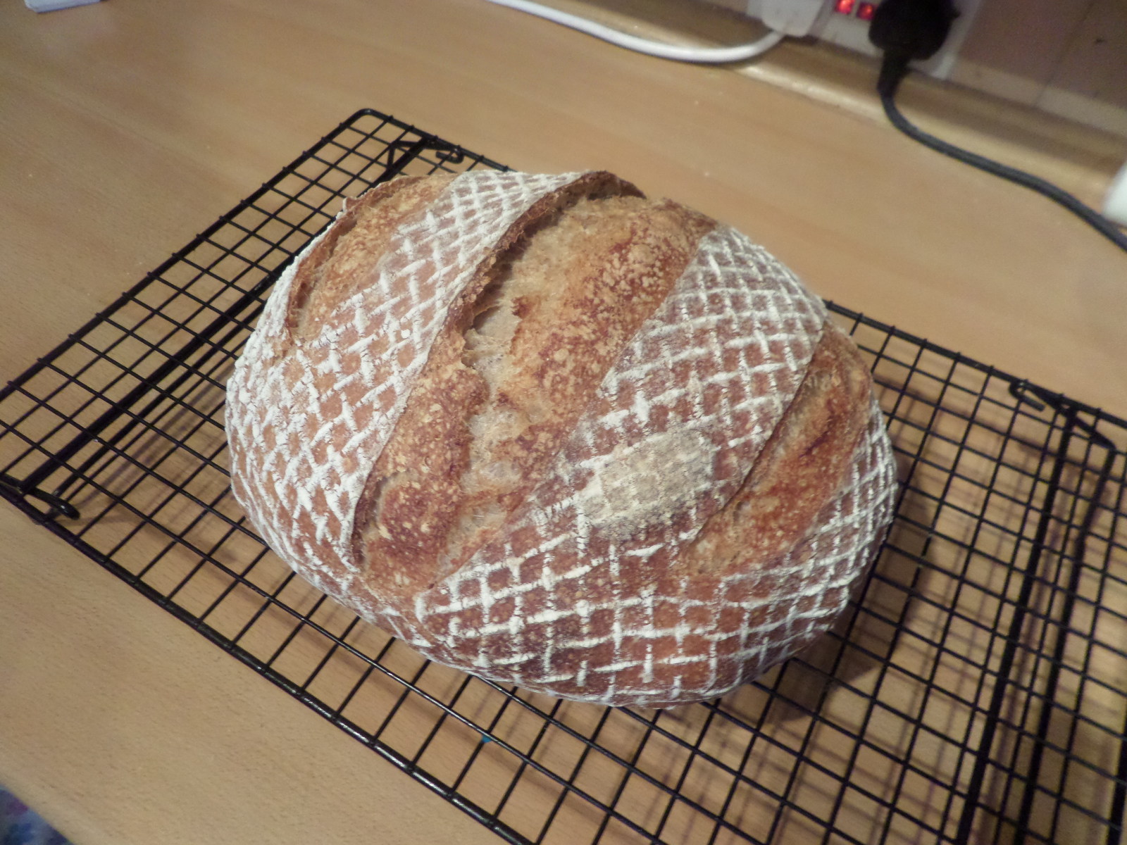 My 1kg sourdough loaf comes in at over 1.1kg, and the dough is rather dry at 67% hydration (it forms around the stand mixer hook almost immediately), so I’m going to try reducing the flours to come to an actual 1kg with 79% hydration.