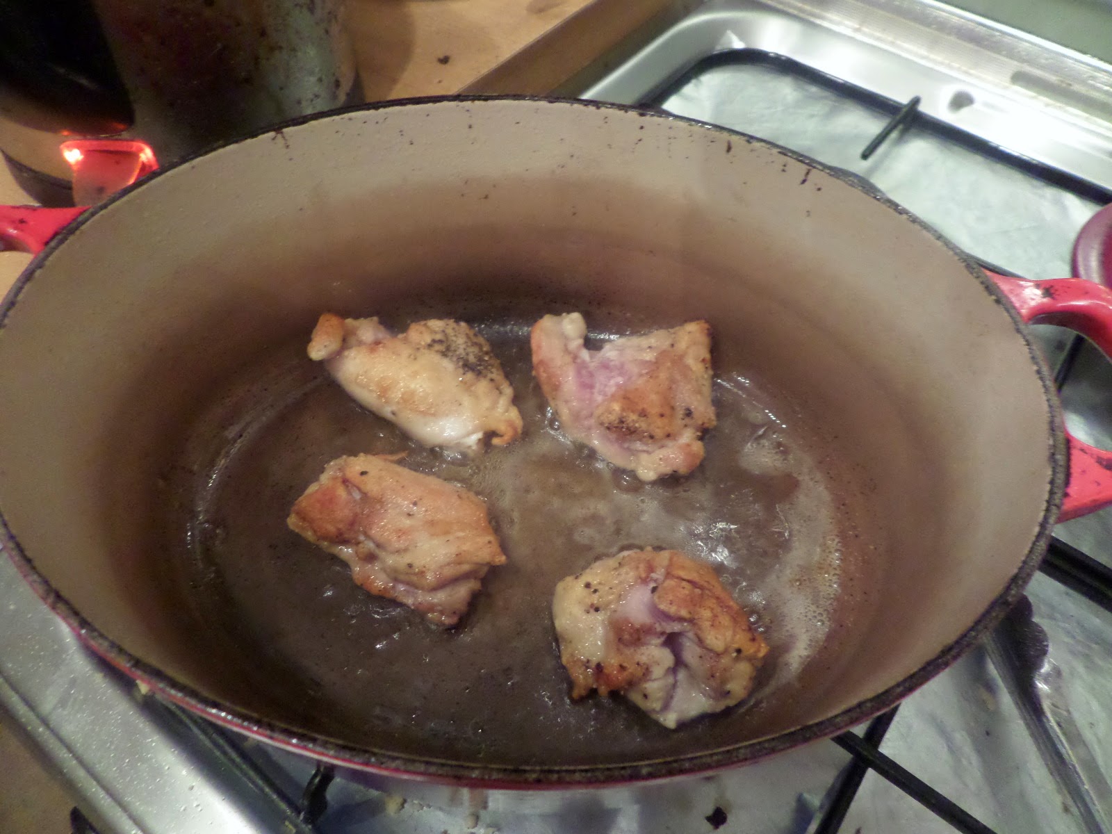 Well I was planning on picking up rabbit… but their courier had an accident on the way to deliver it (I hope they’re OK!) and so I’m only getting the veg. So it’s some defrosted chicken thighs instead.