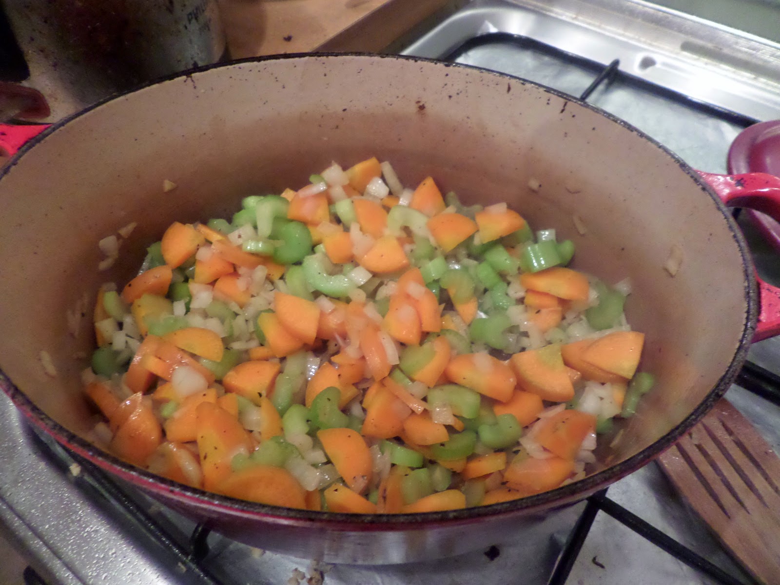 Then soften the mirepoix.
