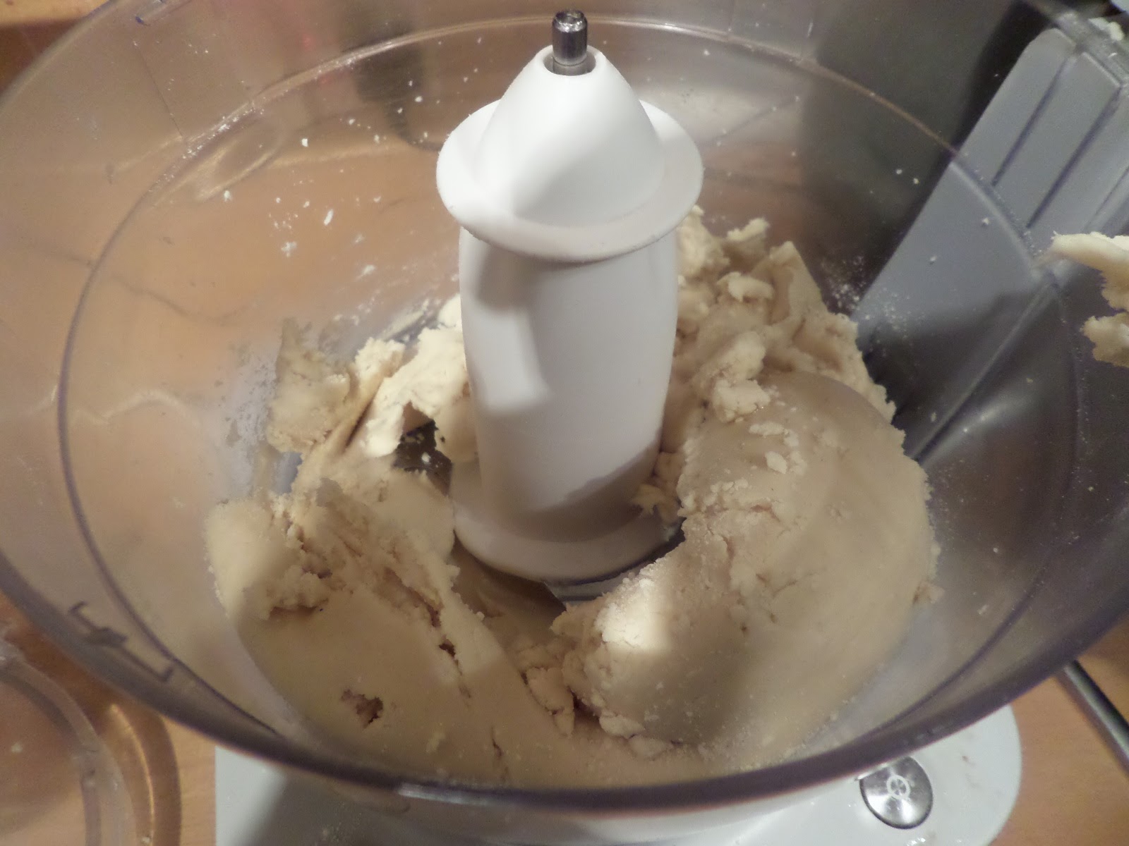 This didn’t go so well. I used about 50g of butter, and forgot that it’s about 20% water… so after adding the extra water it was very sloppy. So I added more flour… then more… and more – all the time processing it more, so I’m worried I’ve really overworked it.