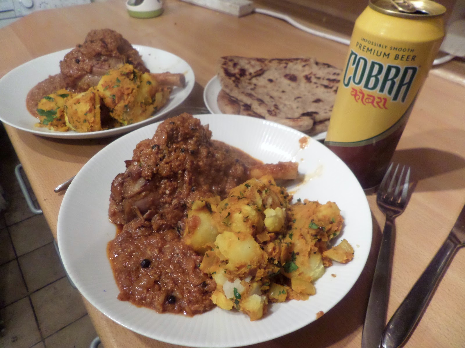 The lamb was lovely and fally-apart-y, full of flavour, and just a little too hot :) The sauce was mopped up nicely but the naans, which were flavourful and thankfully not too hot given the sauce they were mopping up! The potatoes were… OK. Would have been better chopped smaller… but that’s a lot of effort, so maybe just rice next time :)