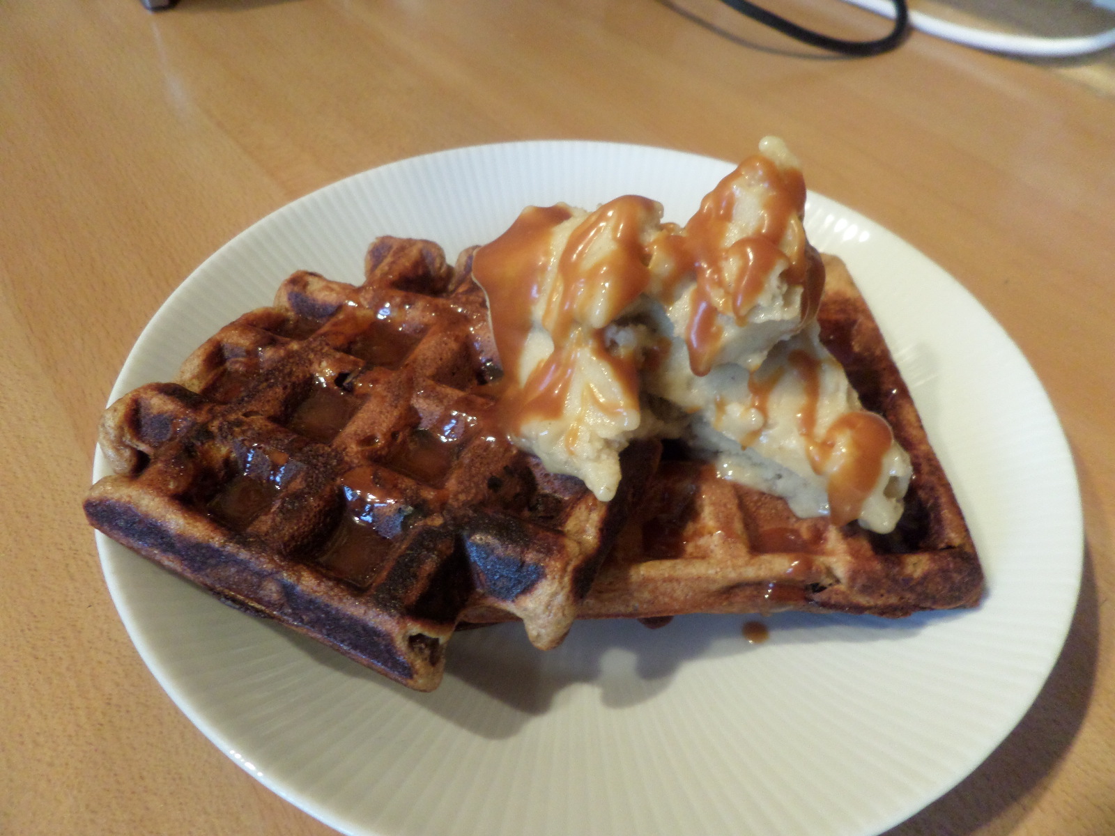 The taste was… odd. You don’t expect boozy mincemeat in a waffle, but once you get over the shock it’s rather good – especially with the salted caramel sauce and banana ice cream we topped it with!
