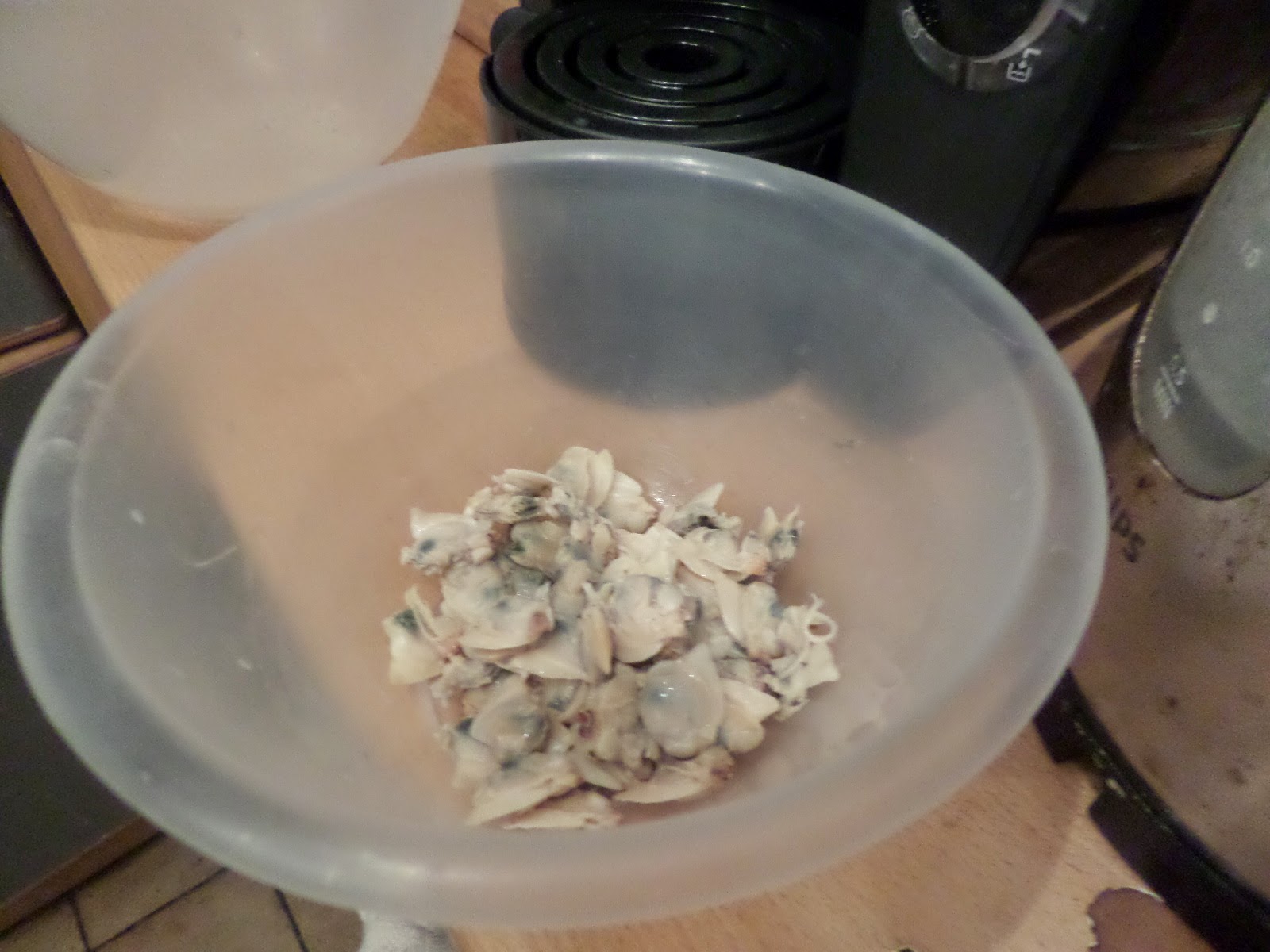 So we boiled up the clams, giving up a clam stock for the base of the chowder.