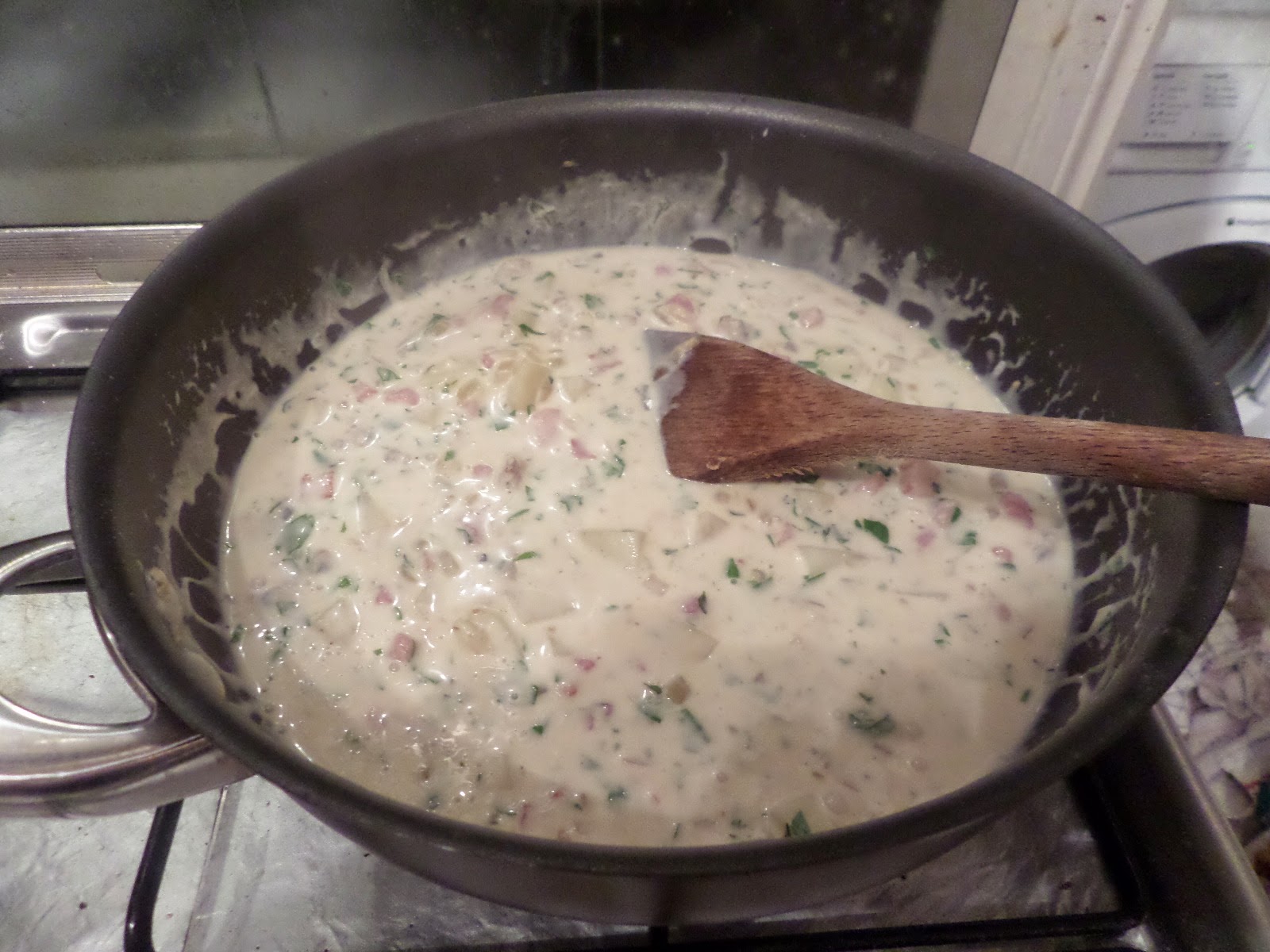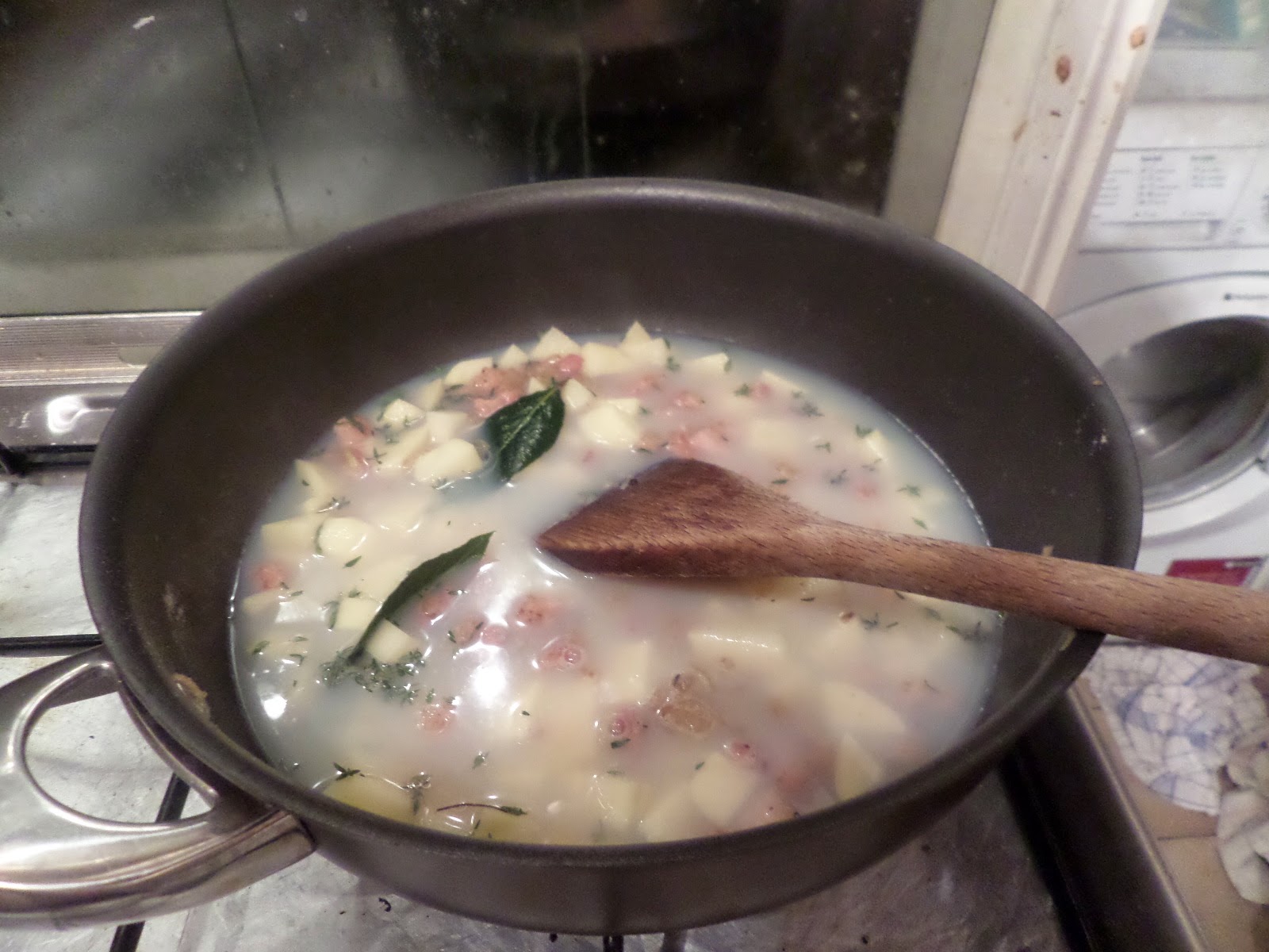 Anyway… bacon, onions, garlic, potatoes, bay, thyme, stock…