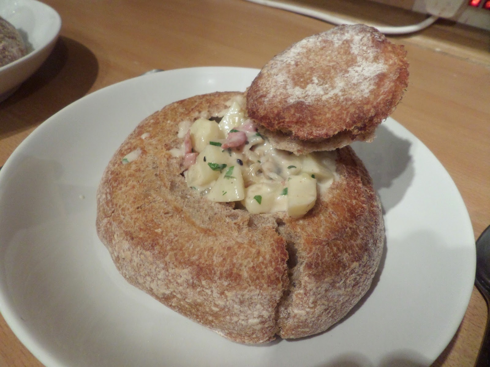 Anyway: it was delicious! Really rich, creamy chowder in a delicious sourdough roll.