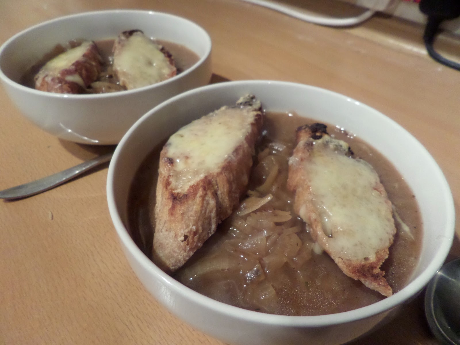 The trick for the French onion soup it to microwave the onions before frying them, to vastly reduce the cooking time.