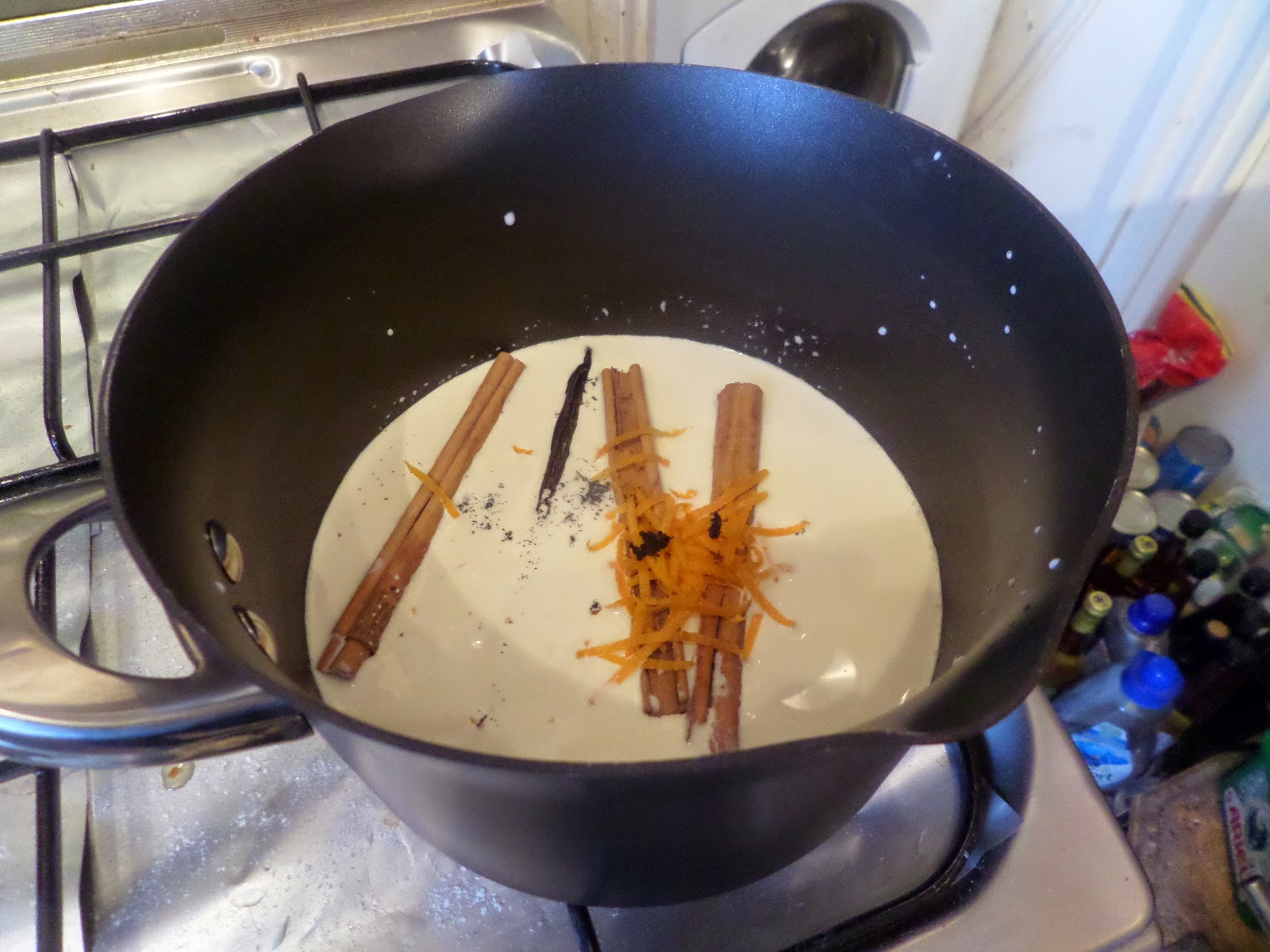 Next morning things start by making infusing milk and cream with cinnamon, vanilla & orange.