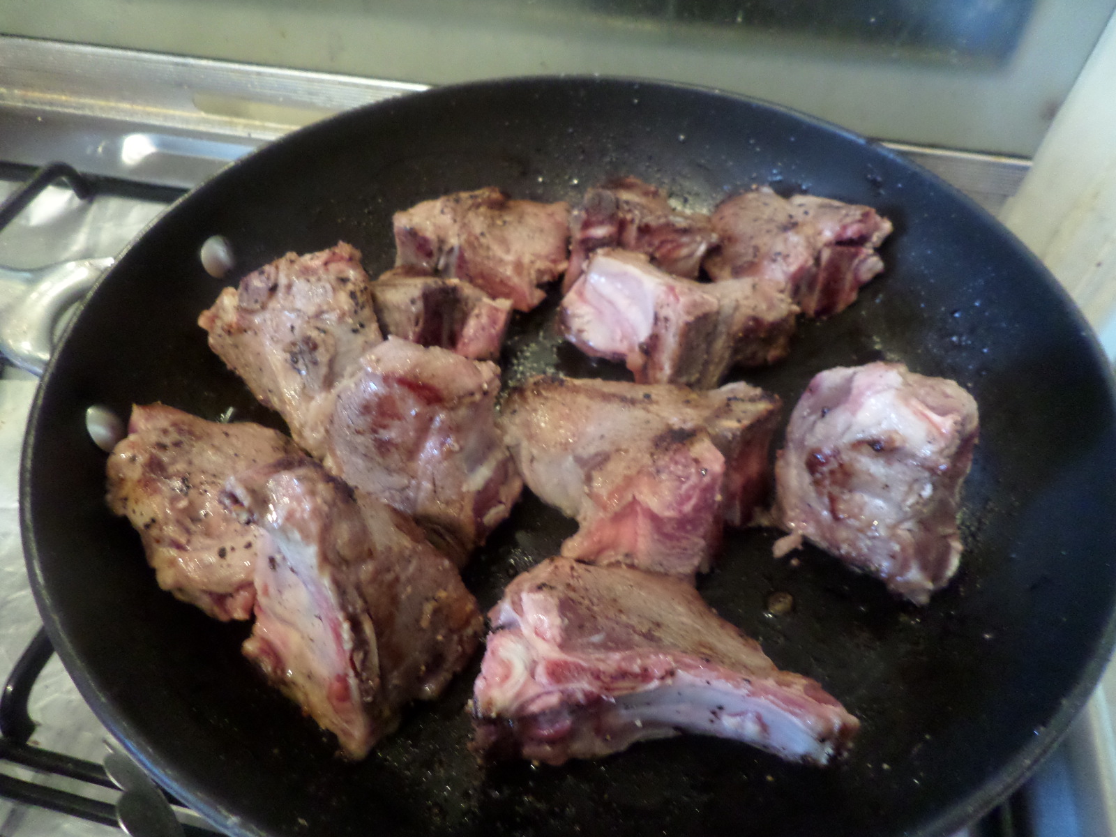 This is a bit of a hodge-podge of ingredients we’ve got lying around. Leftover goat from my birthday that been in the freezer, a jar on Mexican tinga paste approaching it’s best before date, dry kidney beans, all combining to a slow goat tinga.