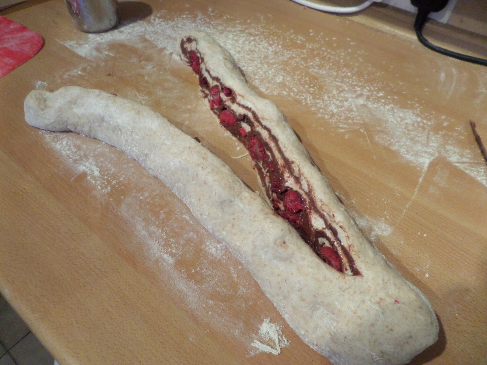 With the chocolate spread and raspberries in layers you can eat this like cake and it’s lovely. However I suspect we’ll be adding butter and jam by tomorrow…