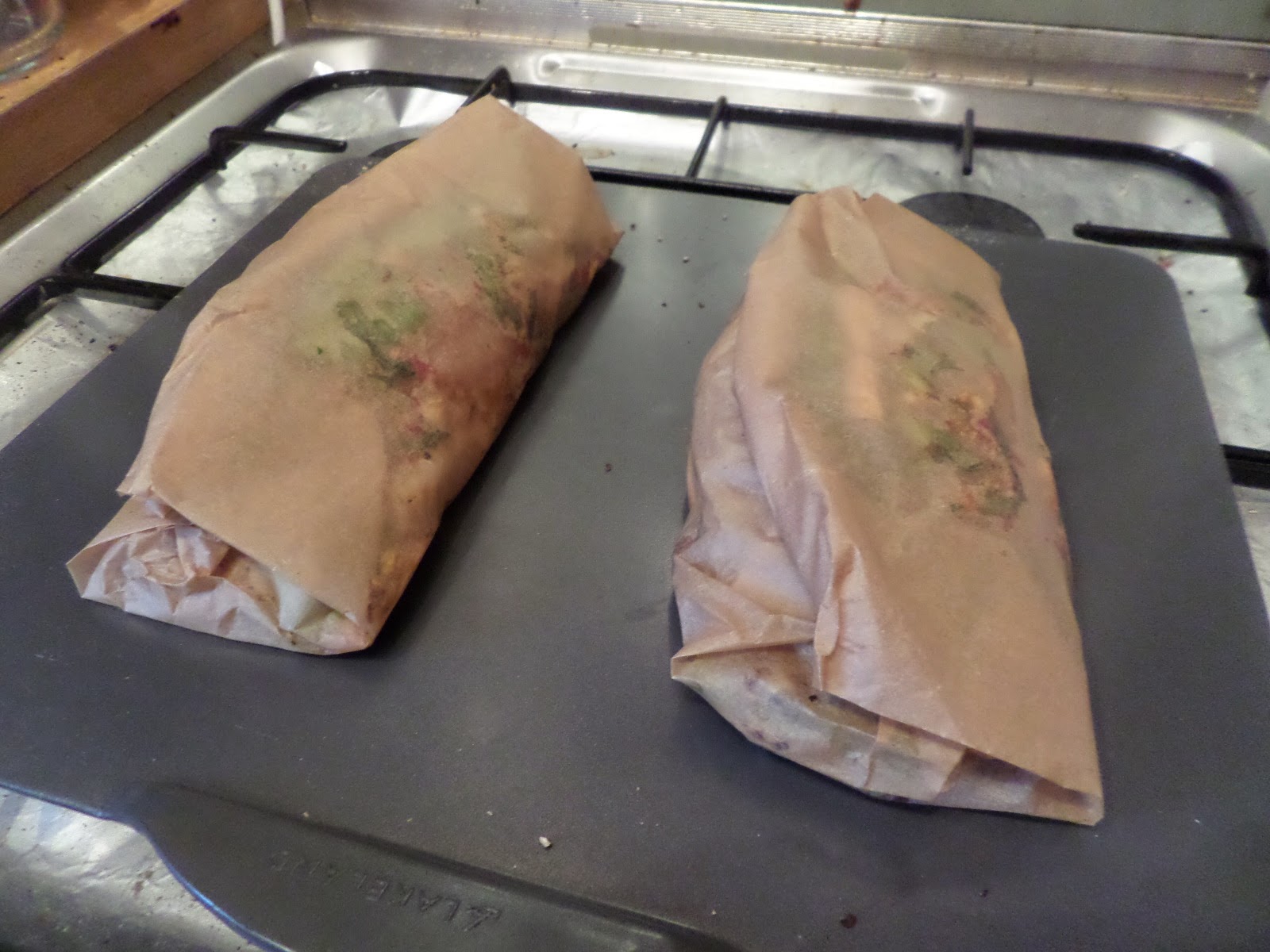 I’ve been planning to do fish en papillot for a while, and was hoping to get a whole fish for it, but apparently Sainsbury’s online don’t deliver them, and to paraphrase Woody Allen: you trying finding a fishmonger that open on Good Friday!