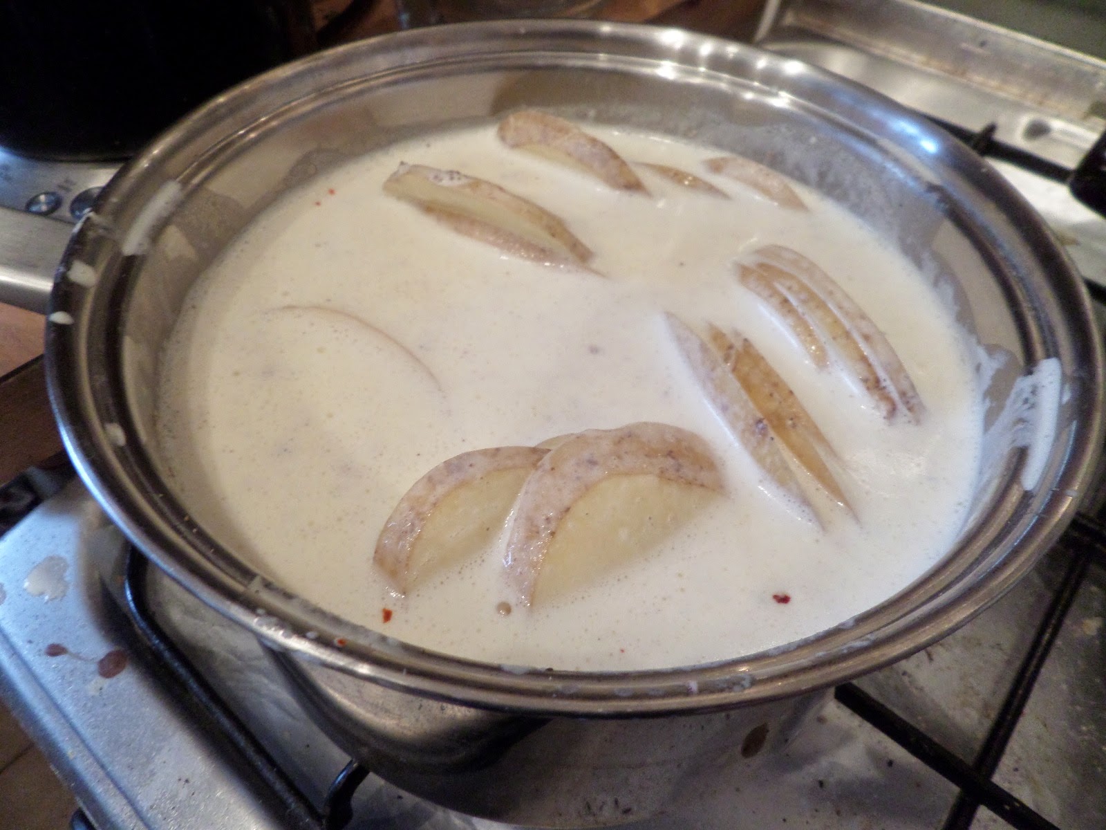 For the potatoes it’s just BBC Good Food. Boil up mandolined potatoes in milk, double cream and butter, plus garlic, thyme, nutmeg & seasoning.