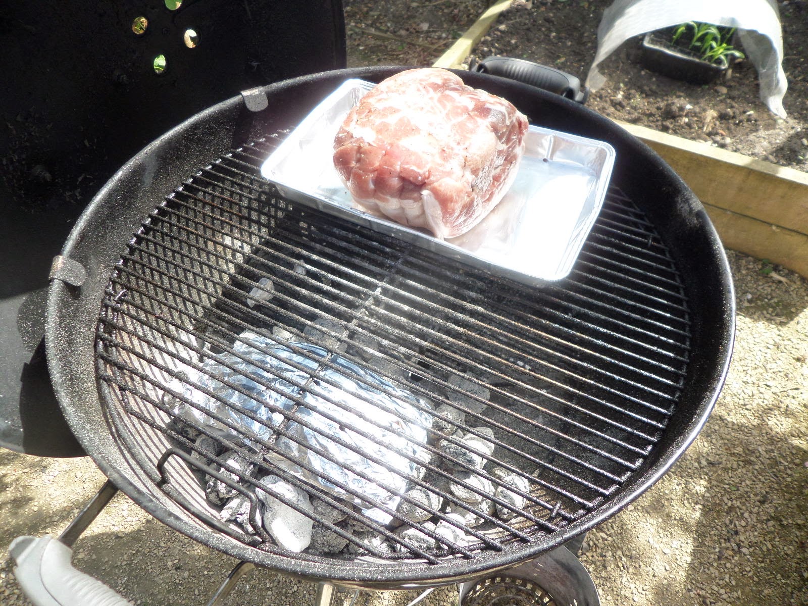 The pulled pork starts on the BBQ, getting smoked for two hours.