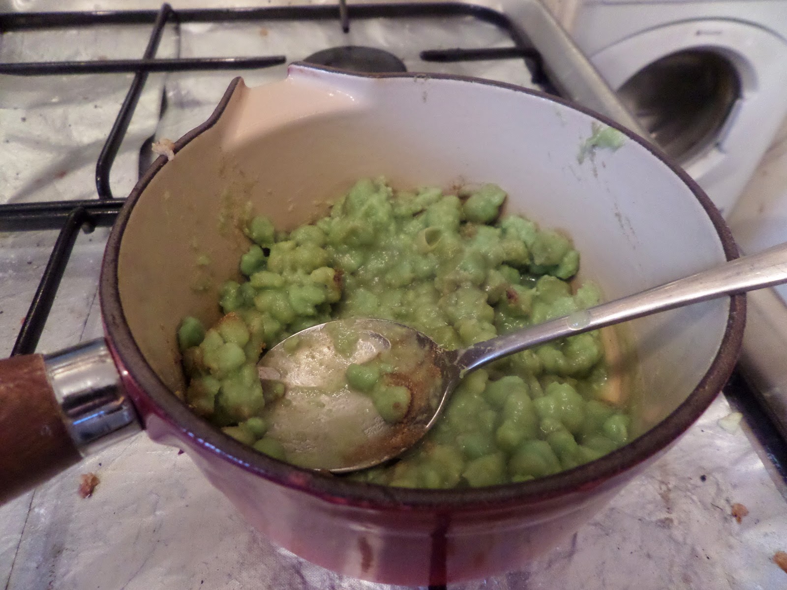 Mushy peas… come from a tin, but have some ground coriander added for our personal taste.