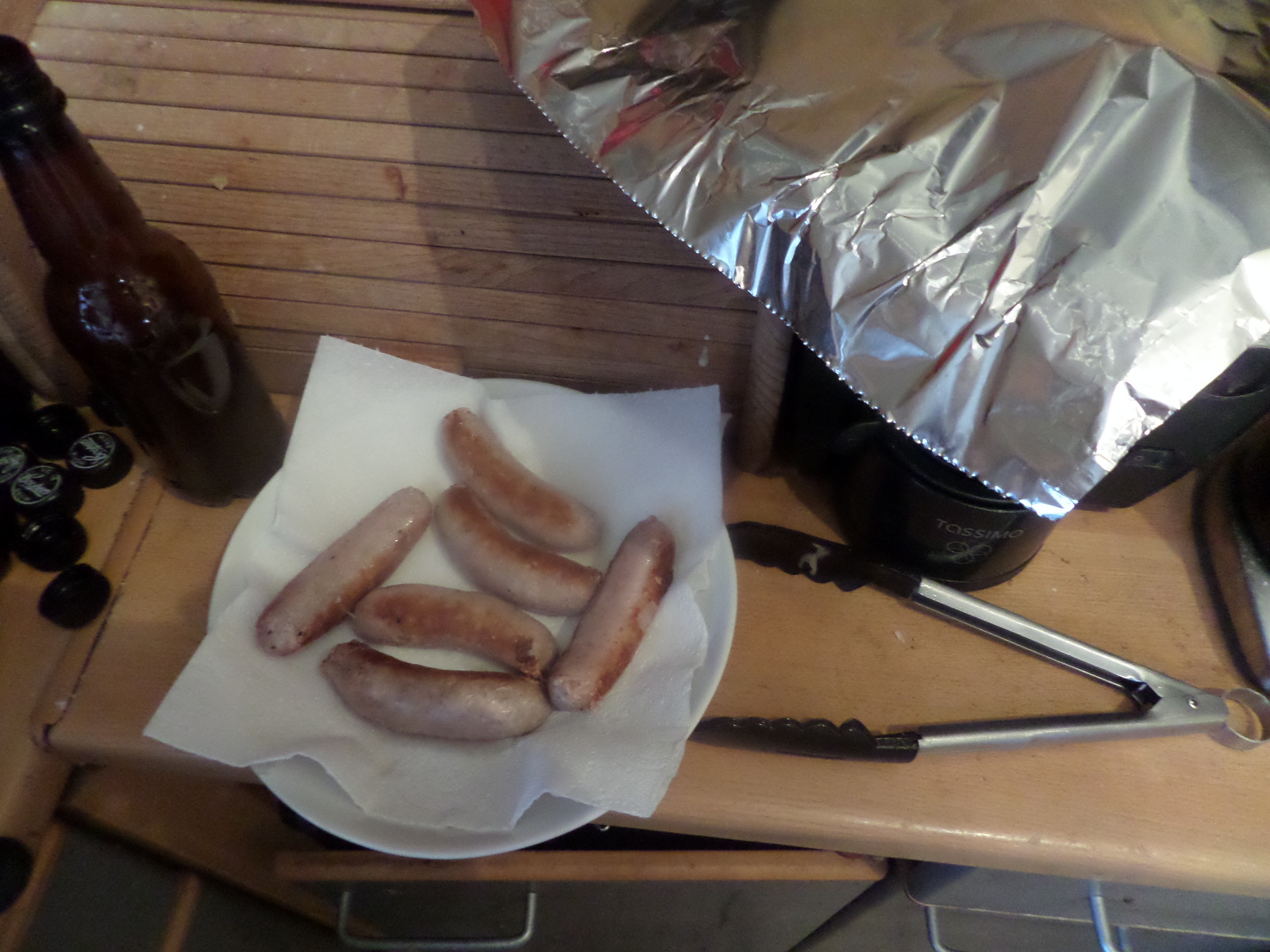 After checking the sausages are at least 72C (yeah… slightly over…) they come out and get tented.