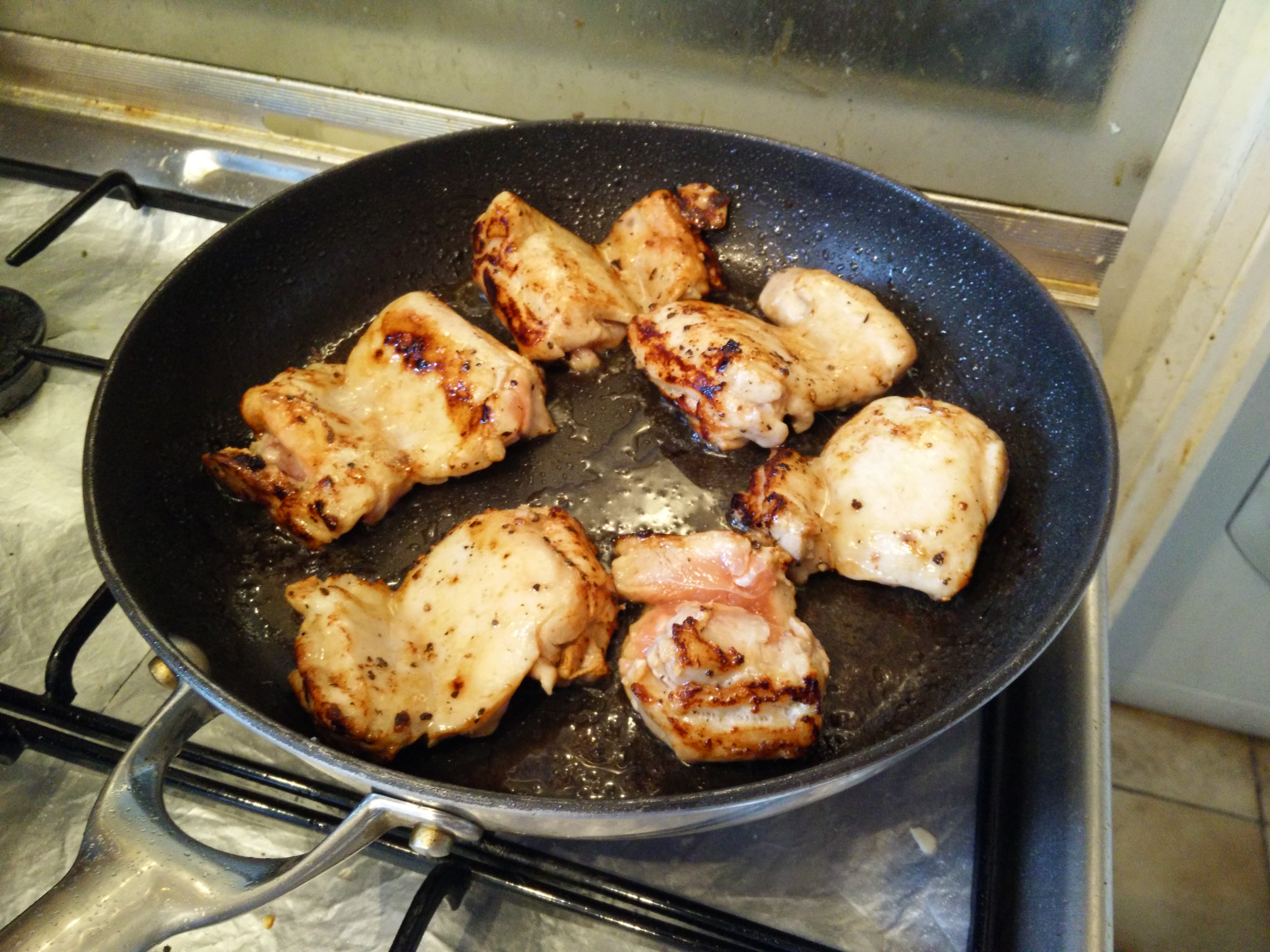 This took much longer than the five minutes the recipe said… but it’s chicken thighs, and you can’t can’t really overcook those guys.