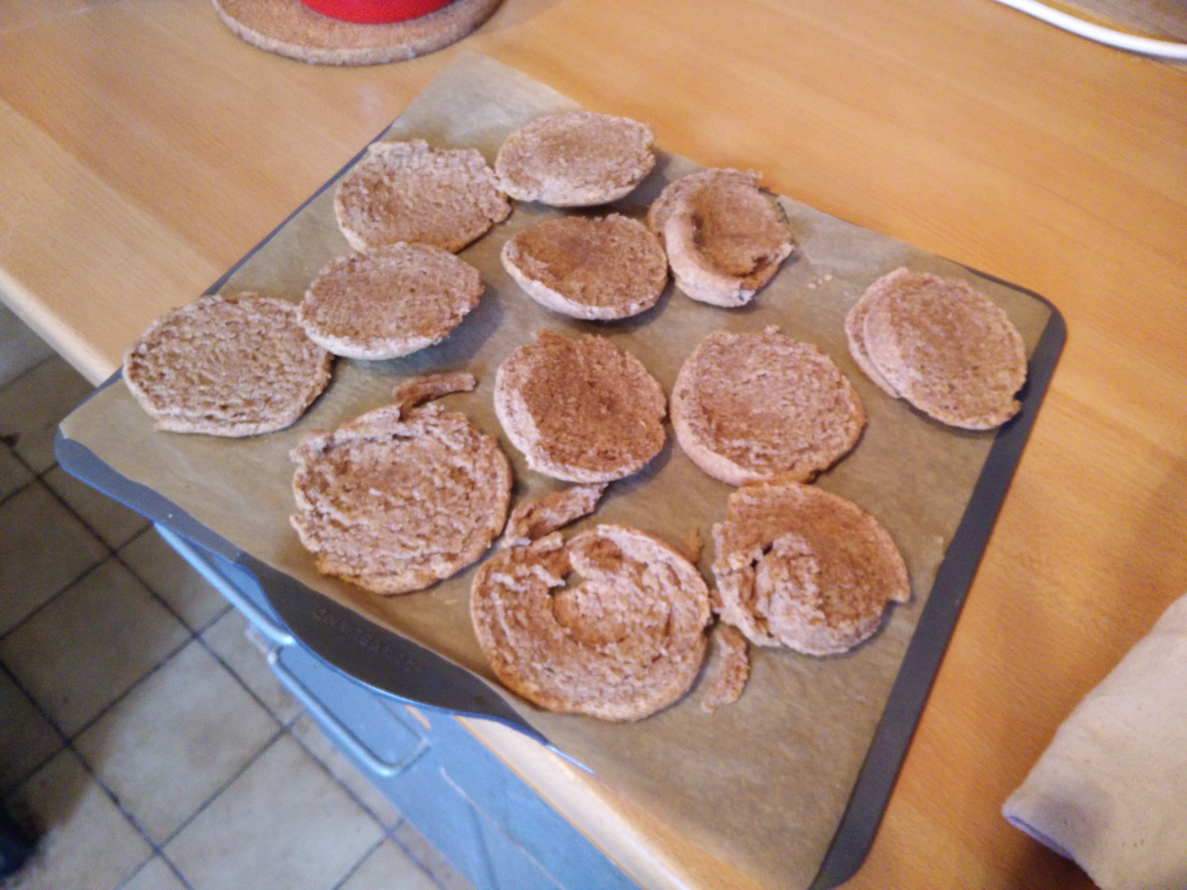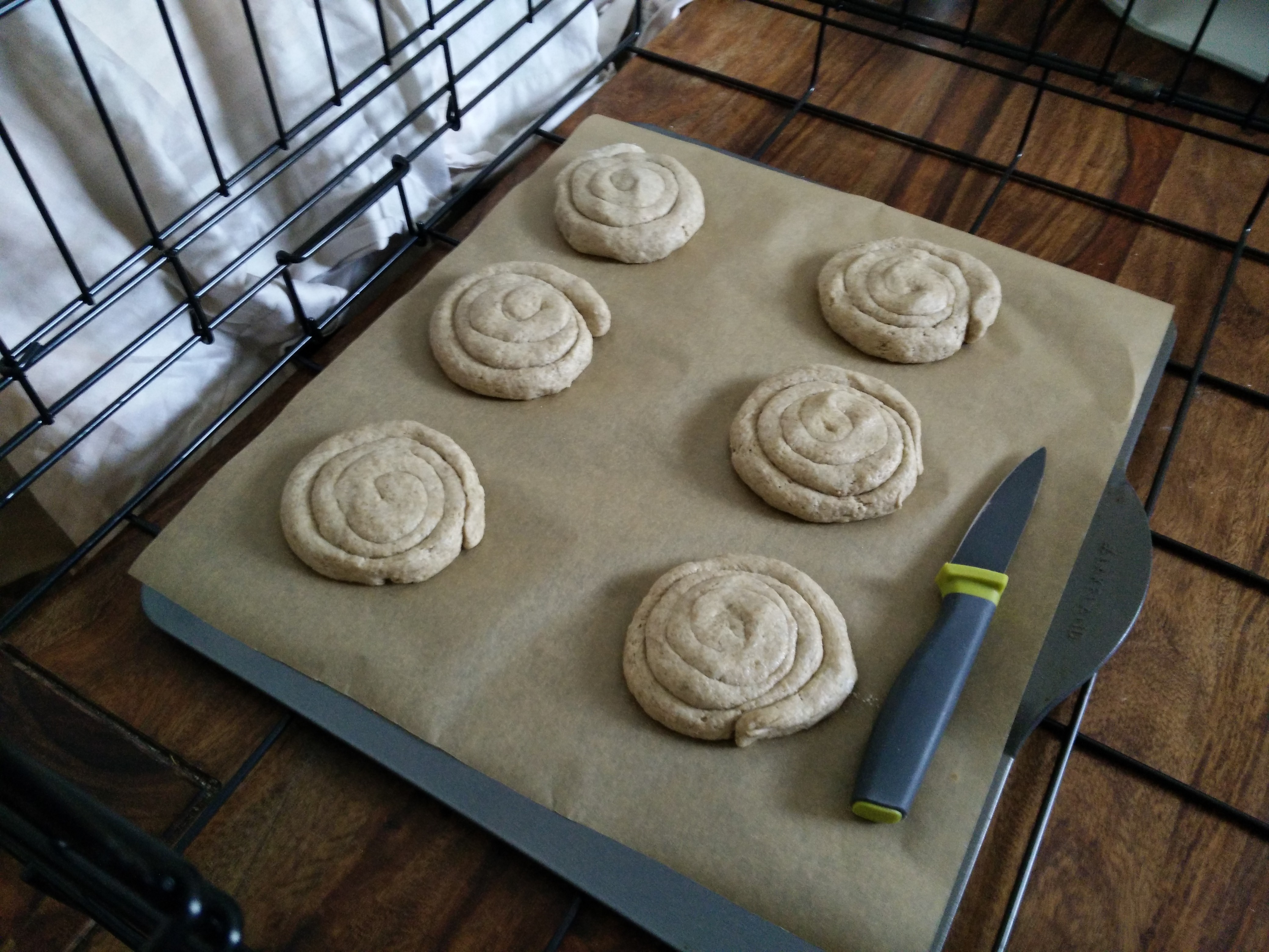 Slicking is easier with scoring, but I scored to low: the tops rose, so my score ended up being low. Also some bit broke, especially around the join of the spiral. Oh well – then then to get broken up before eating anyway.