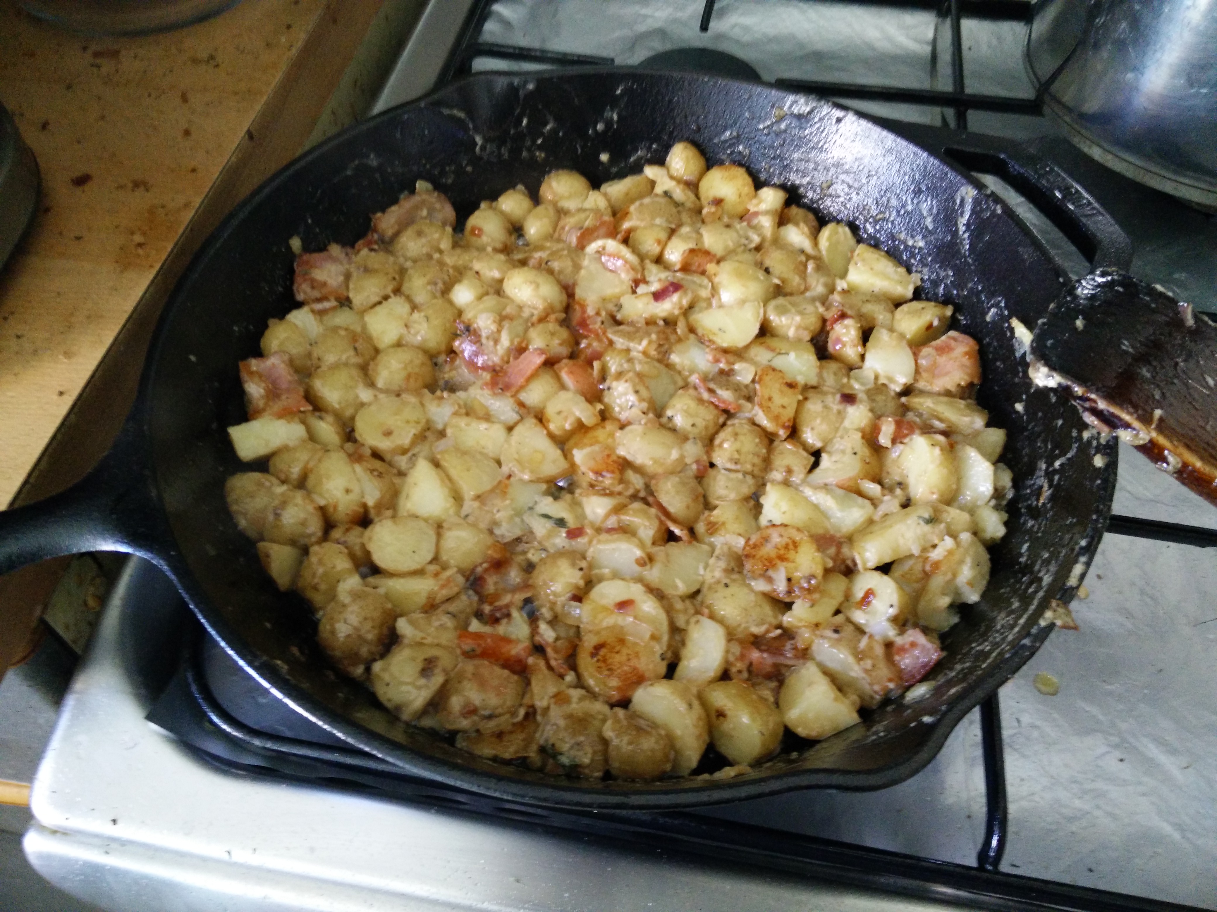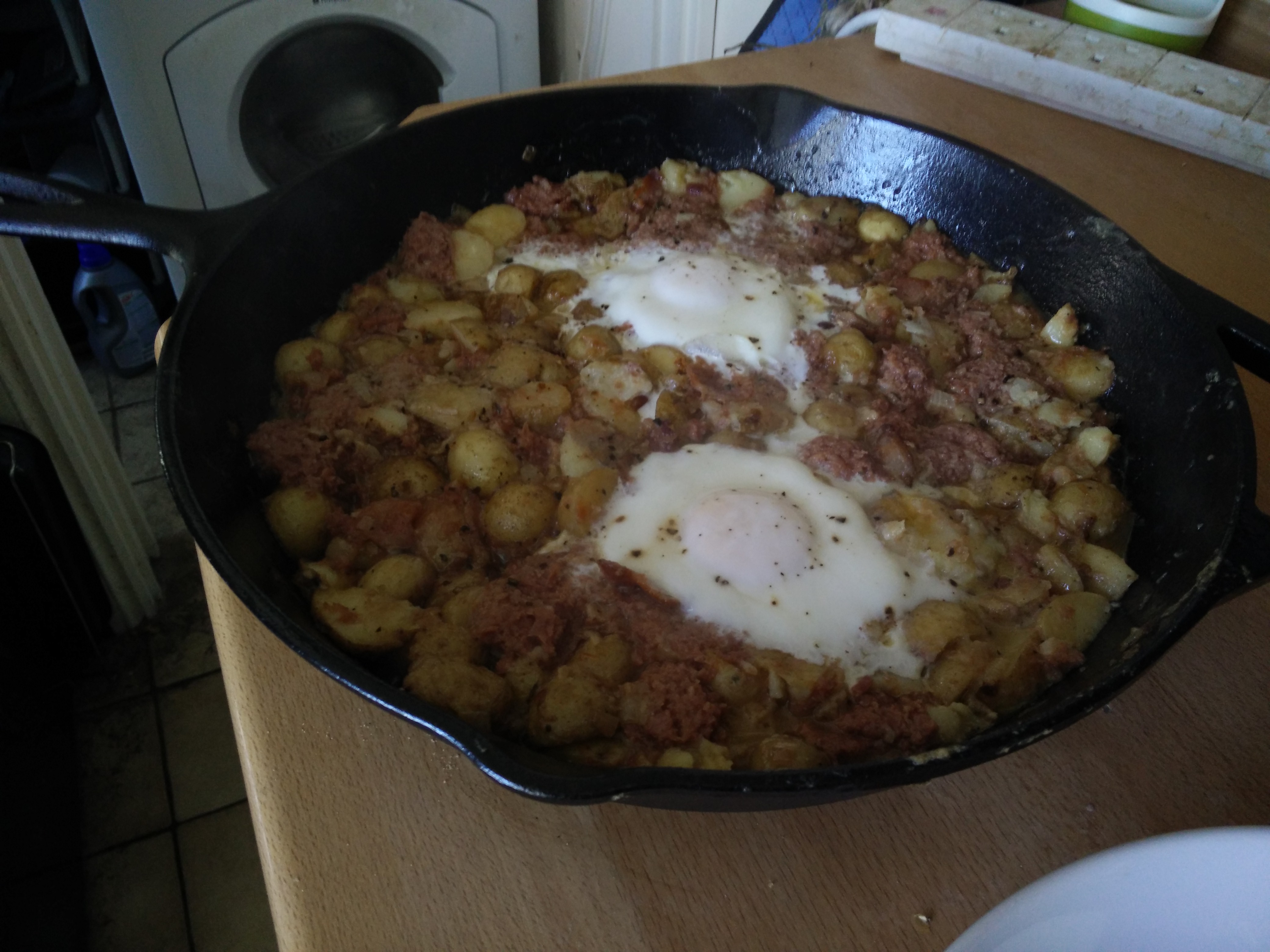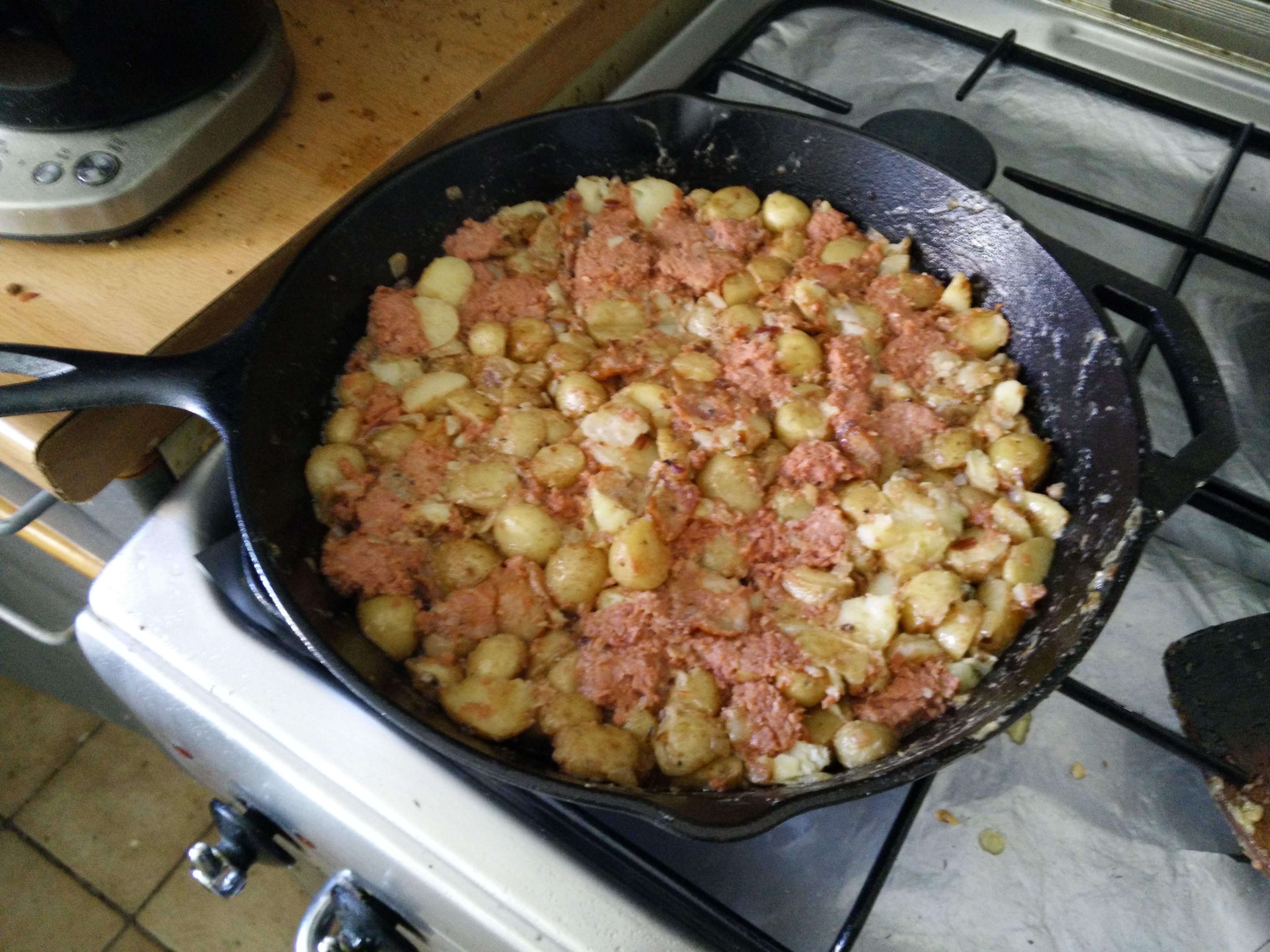 A simple breakfast hash is a great way to use up the last of the garden potatoes, while also allowing me to get my new toy out again: the cast iron frying pan.