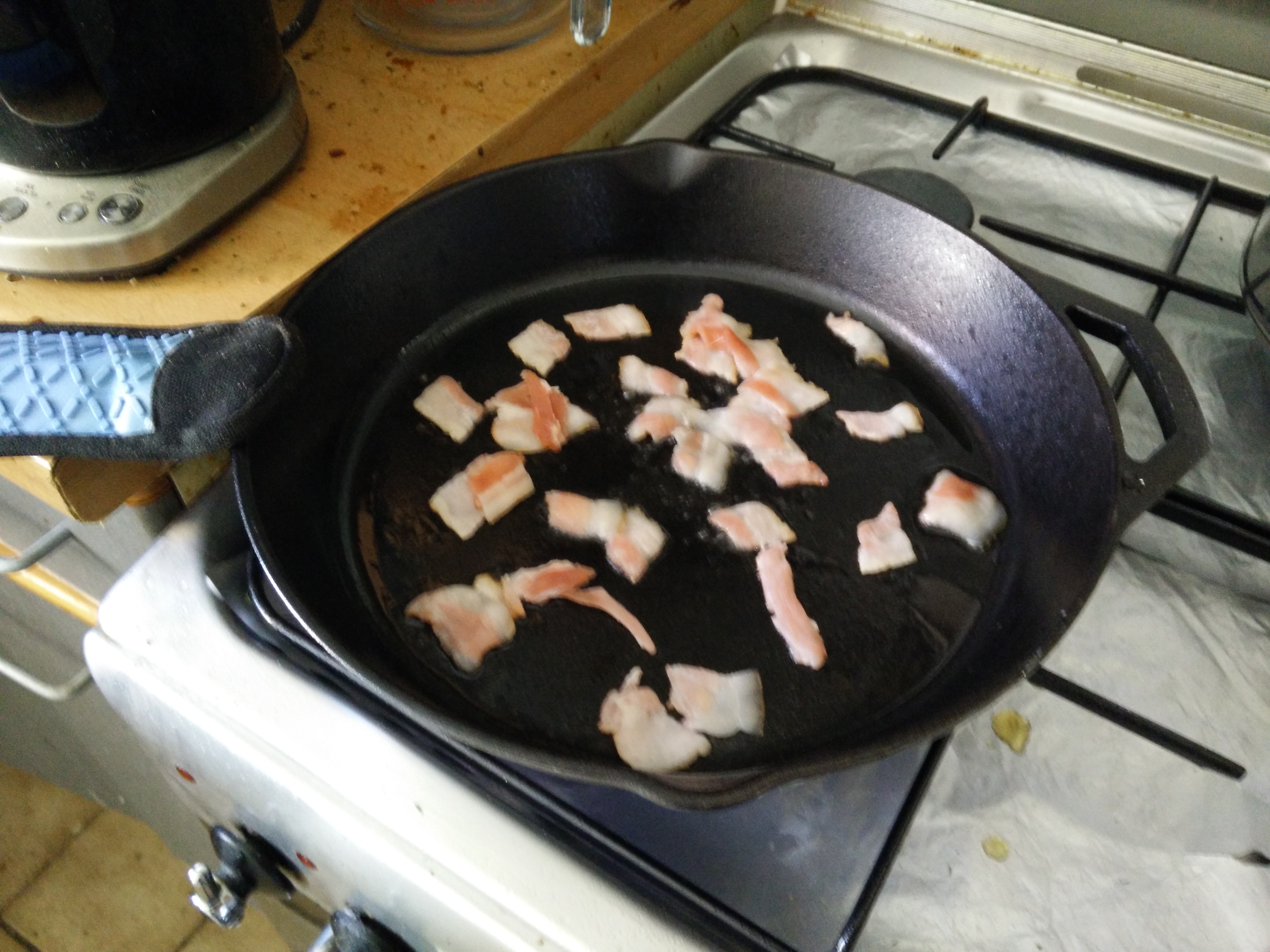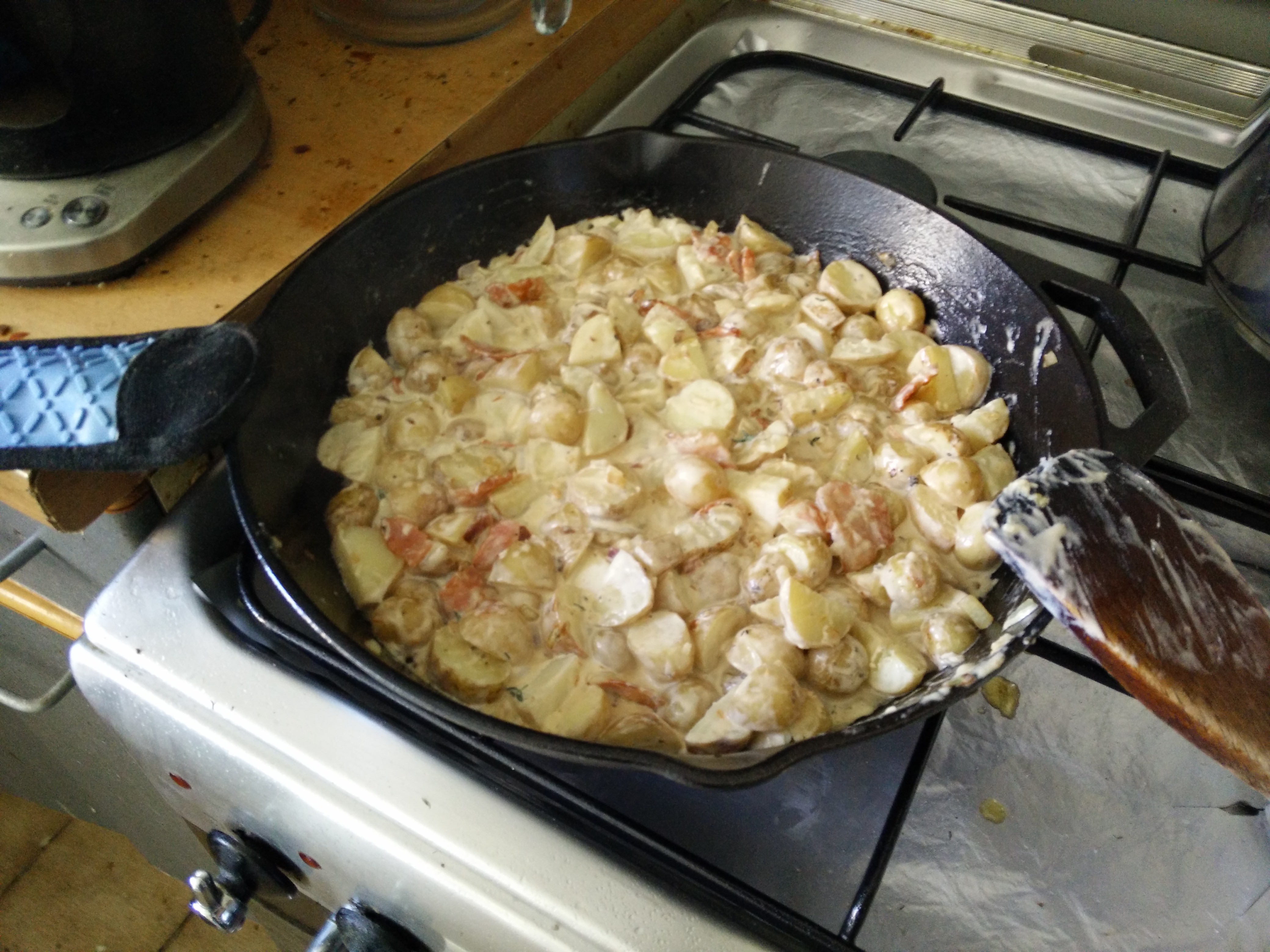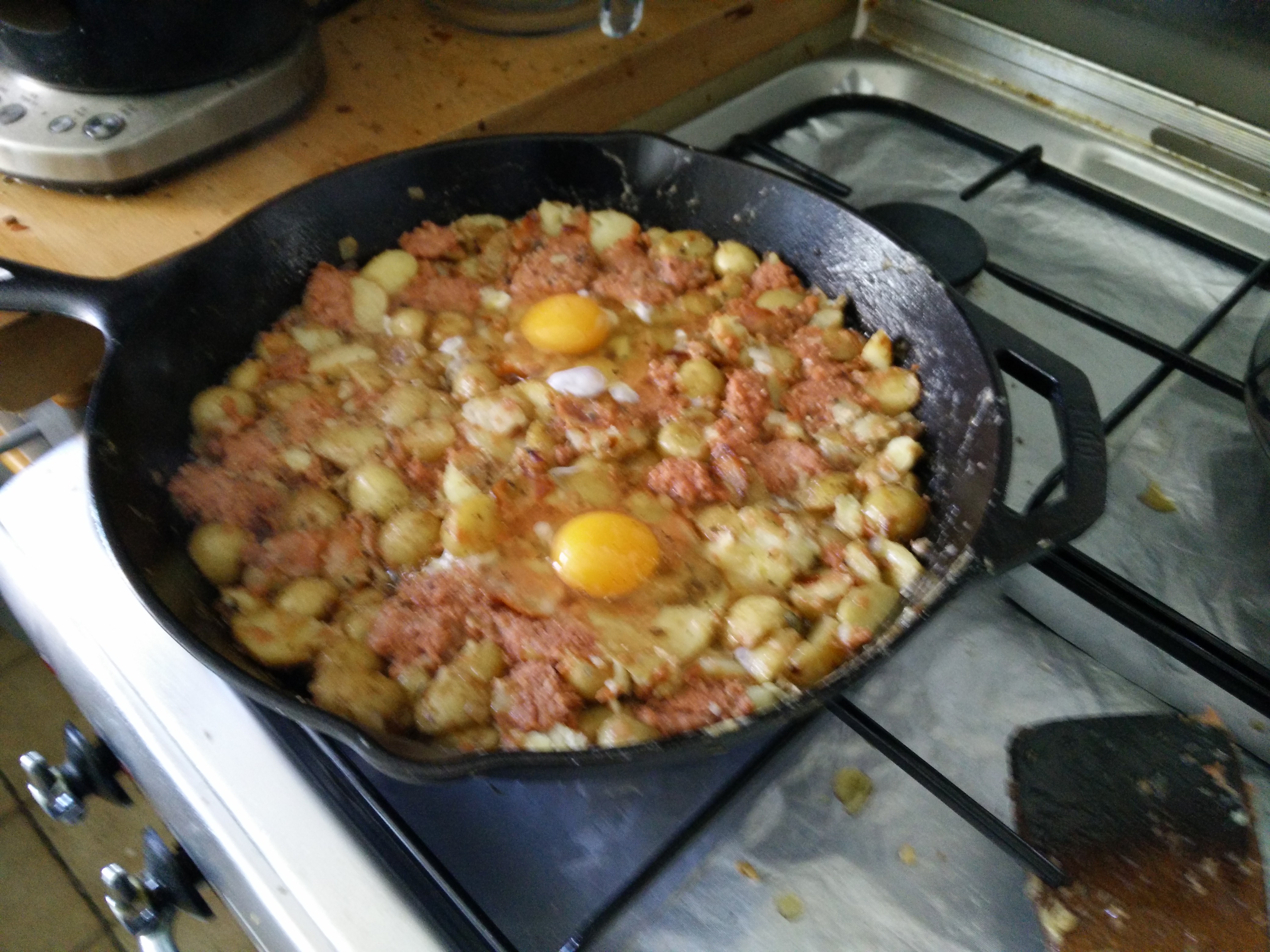 A simple breakfast hash is a great way to use up the last of the garden potatoes, while also allowing me to get my new toy out again: the cast iron frying pan.