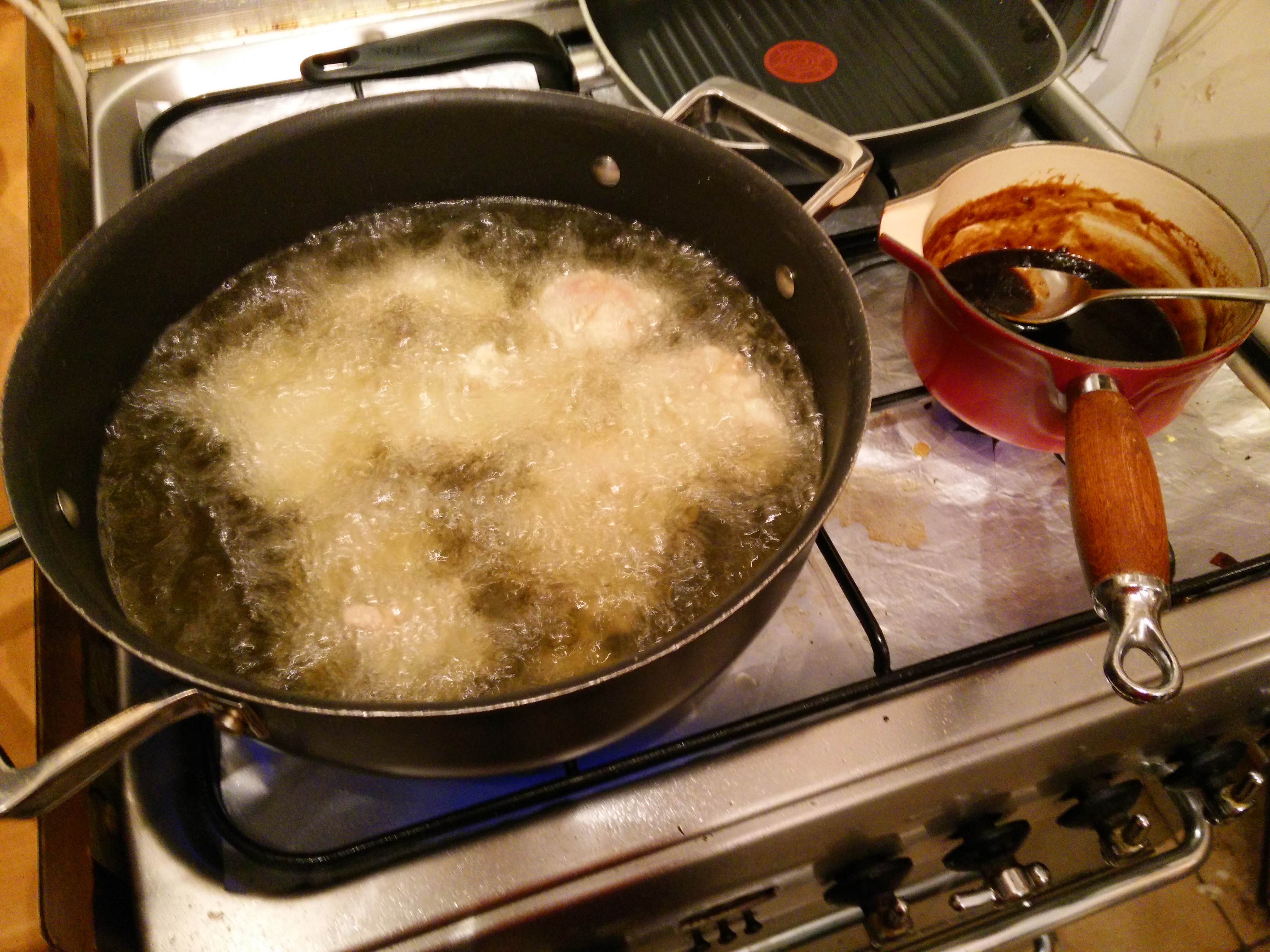 Chicken thighs with seasoning, ginger and loads of cornflour.