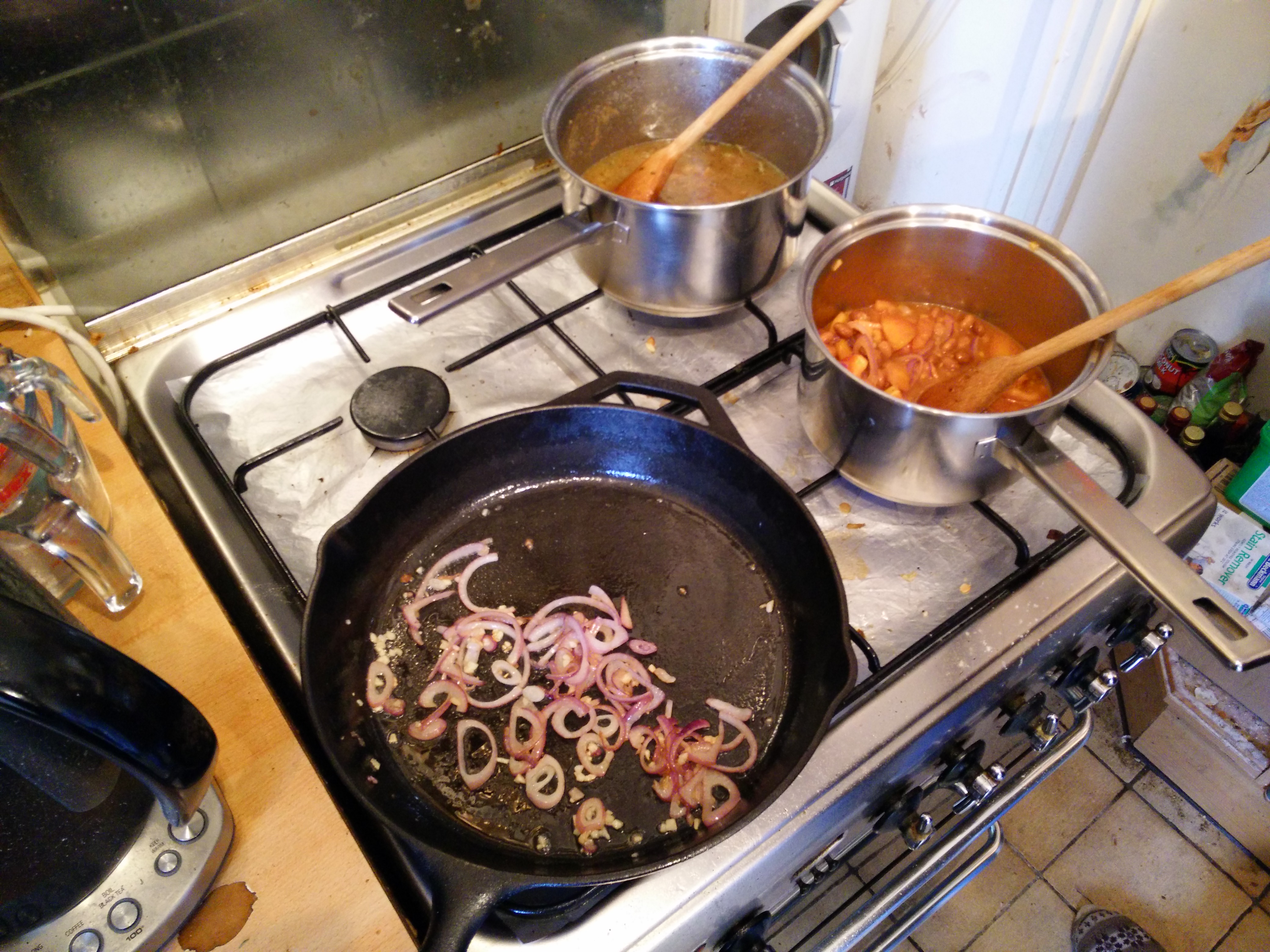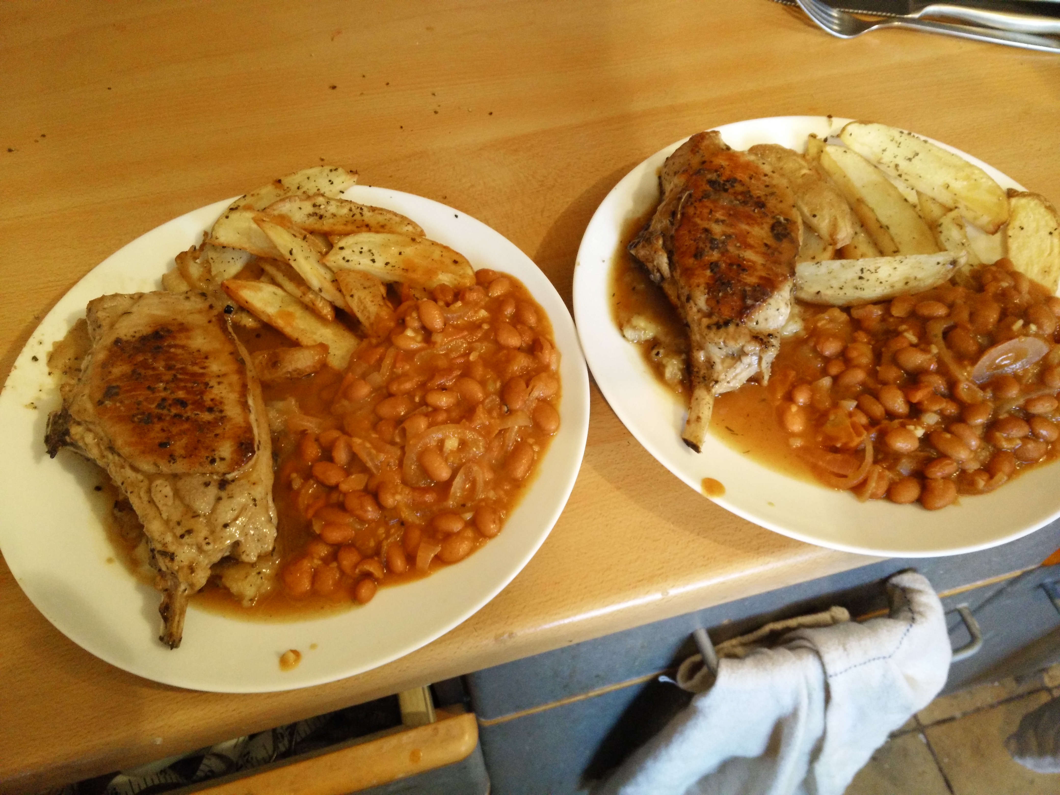 We’re having it with potato wedges and a butterbean and tomato mix with paprika, inspired by a dish that HelloFresh sent us. Soph’s got bored of her standard repertoire of weeknight meals, so when some pushy door-to-door guy came around trying to get us to sign up for this meal delivery service… I actually decided to give it a try. It works well for us they send the exact amount of food for a two-person meal, so while it’s more expensive than buying from scratch it’s pretty economical for us as we’re not having to buy huge amounts of stuff when we only need a little. And so far the recipes they’ve sent have all been really good!
