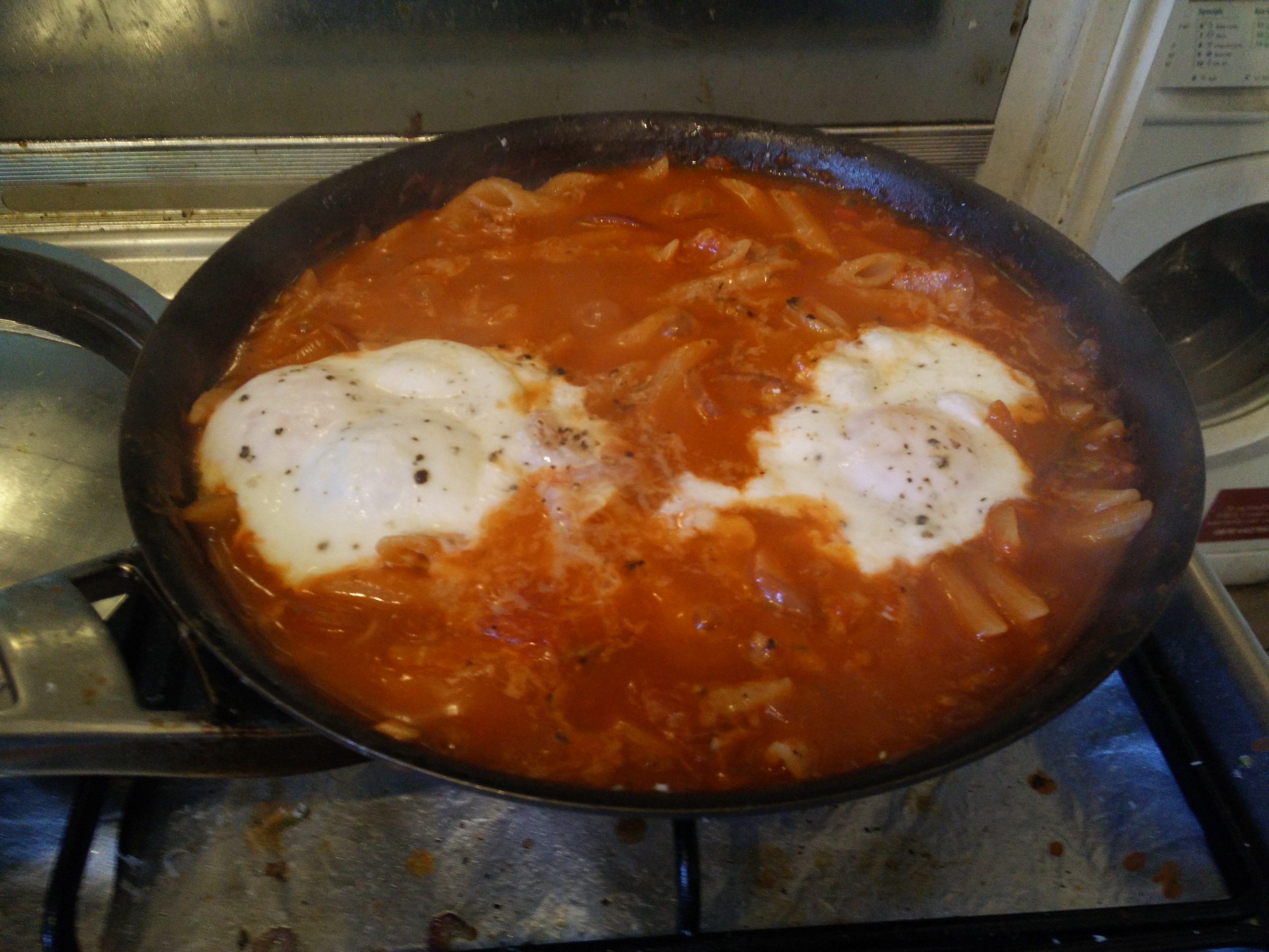 Oh wait. It calls for a 6-inch cast iron pan. I don’t have one of those… yet. Also I don’t have any fresh tomatoes. So it’s going to be inspired by that recipe, more than following it.