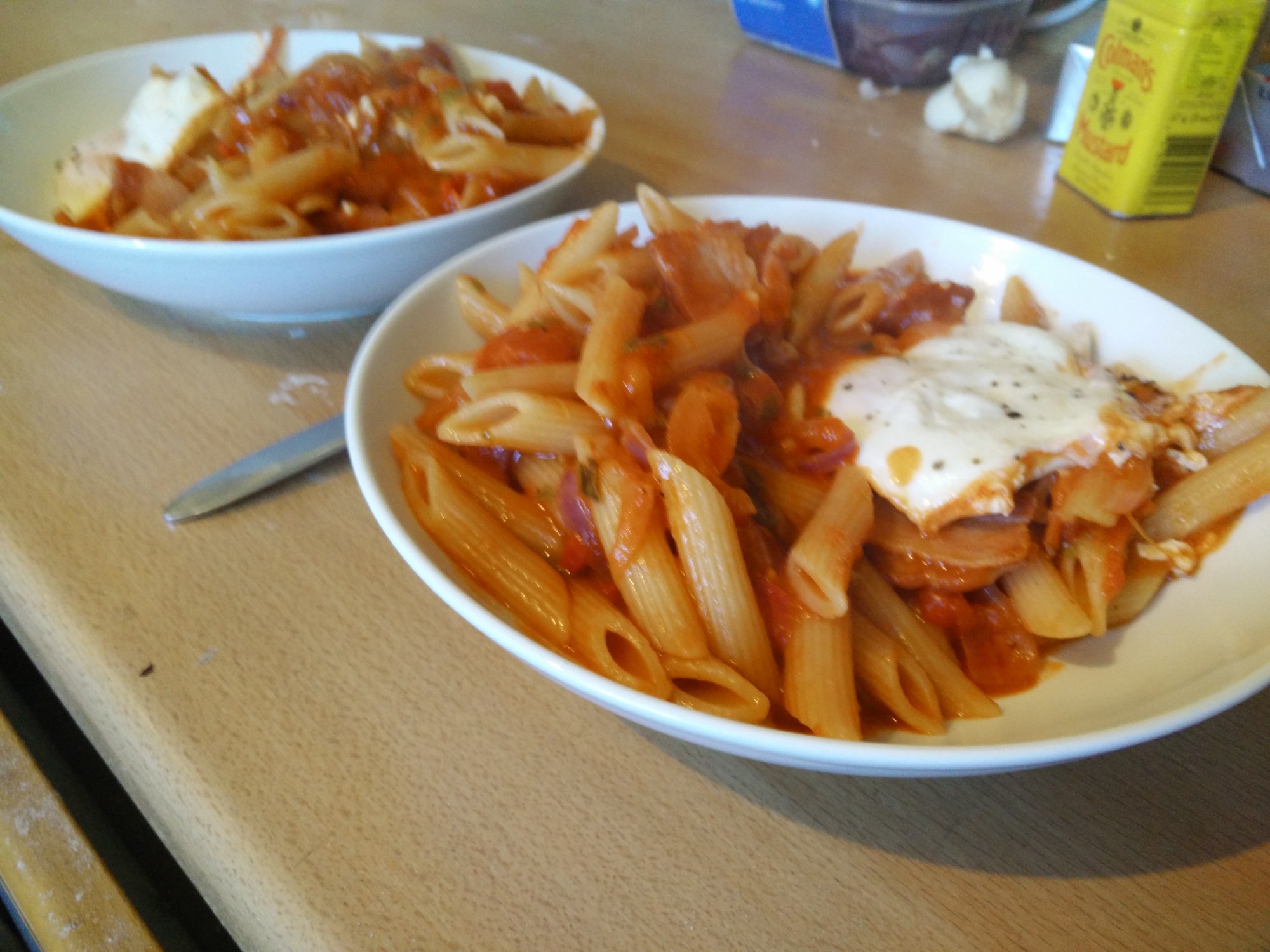 Mmm the chilli gave it a nice kick. A nice enough breakfast, nothing special, and I’m not sure cooking the pasta in the tomatoes adds much to the flavour.
