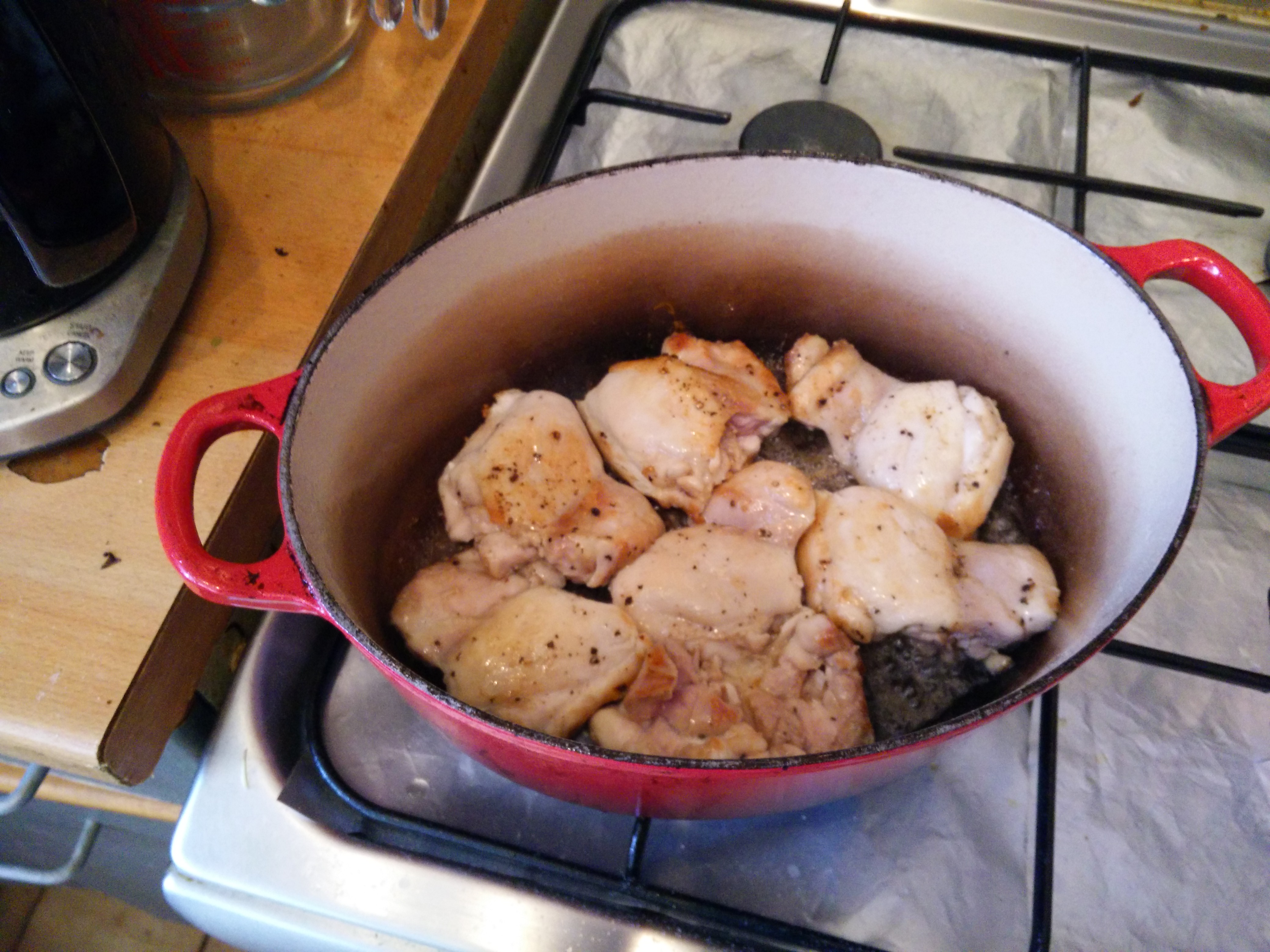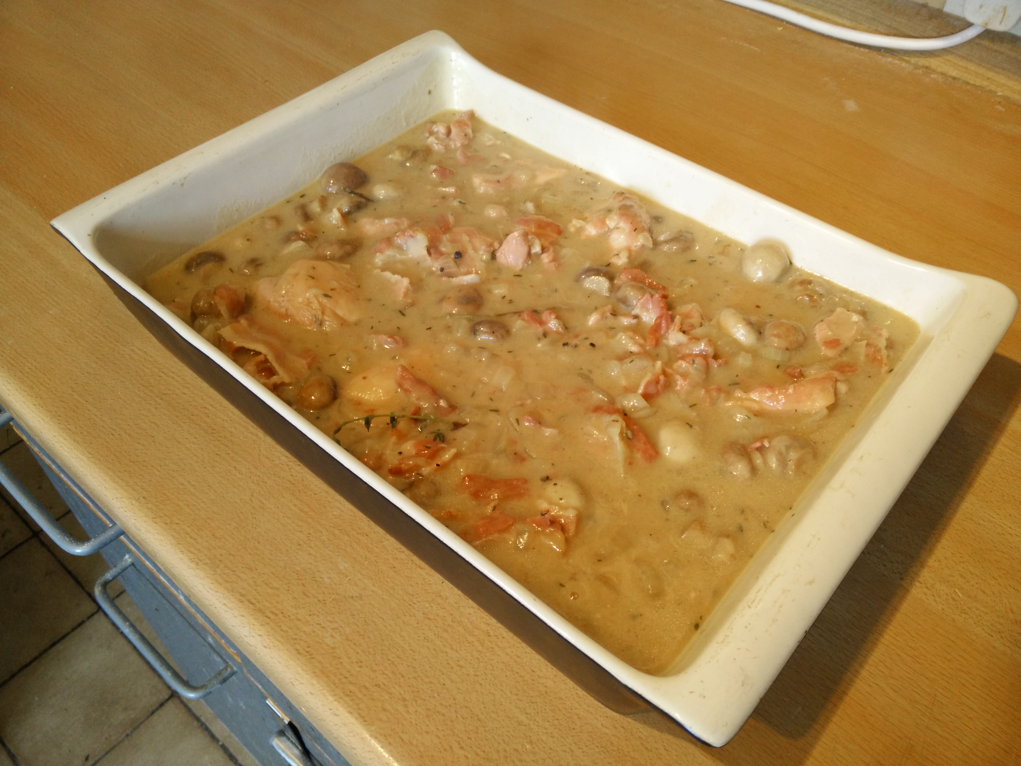 Make a quick faux roux by dumping some flour in, then add chicken stock and milk, and simmer for 30 minutes.