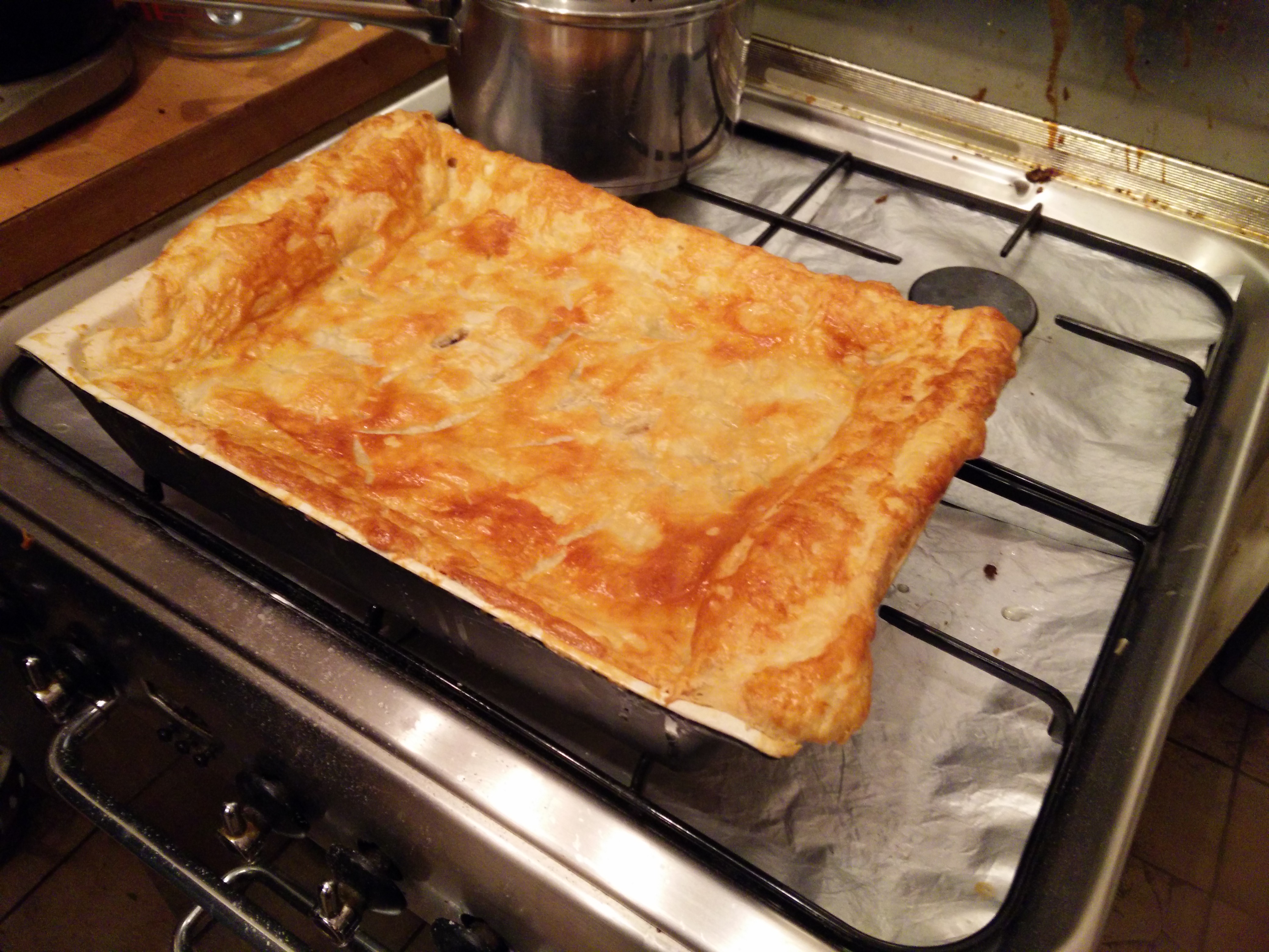 A chip shop staple… but I’ve never made one myself! So after last week’s hectic cooking, it’s time to try a simple pie that will be good for two meals. Recipe from BBC Good Food.