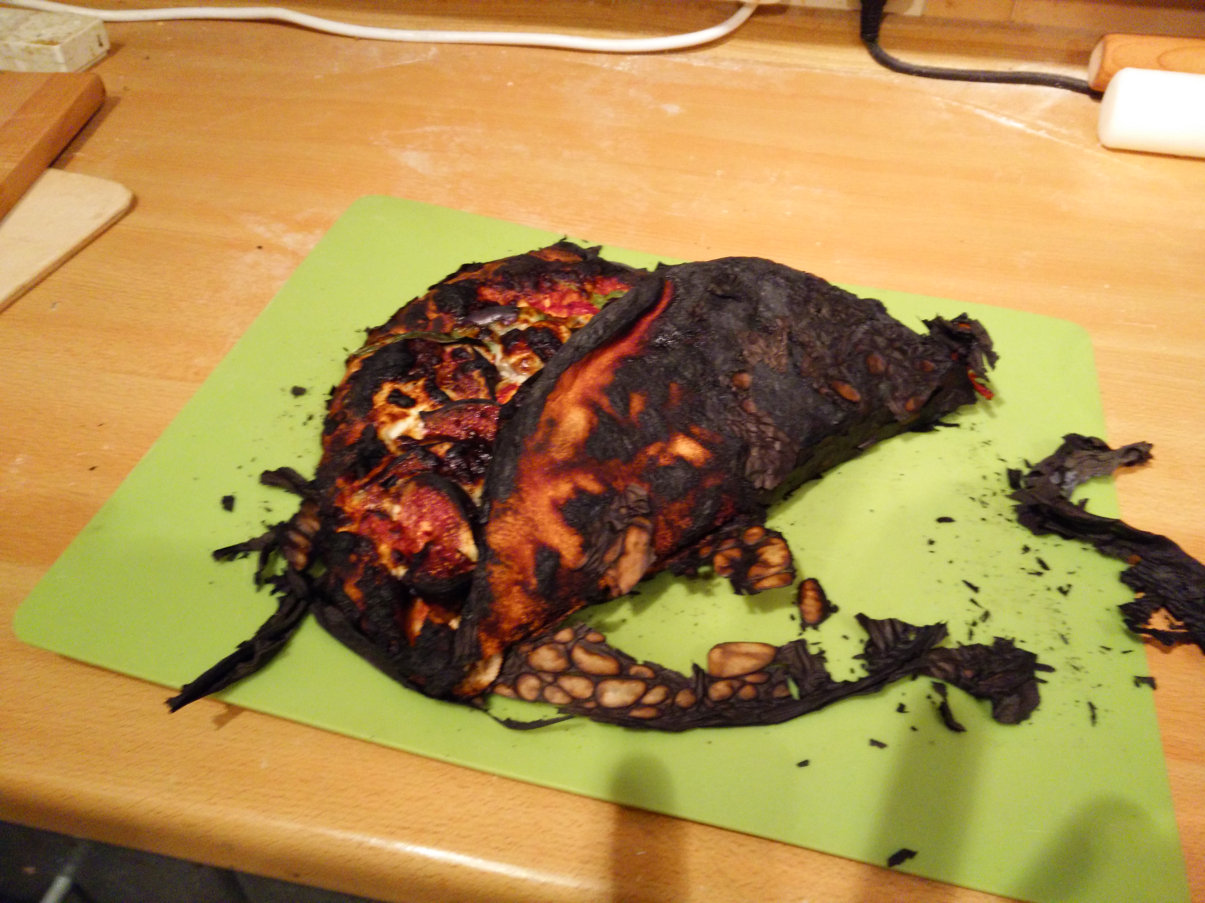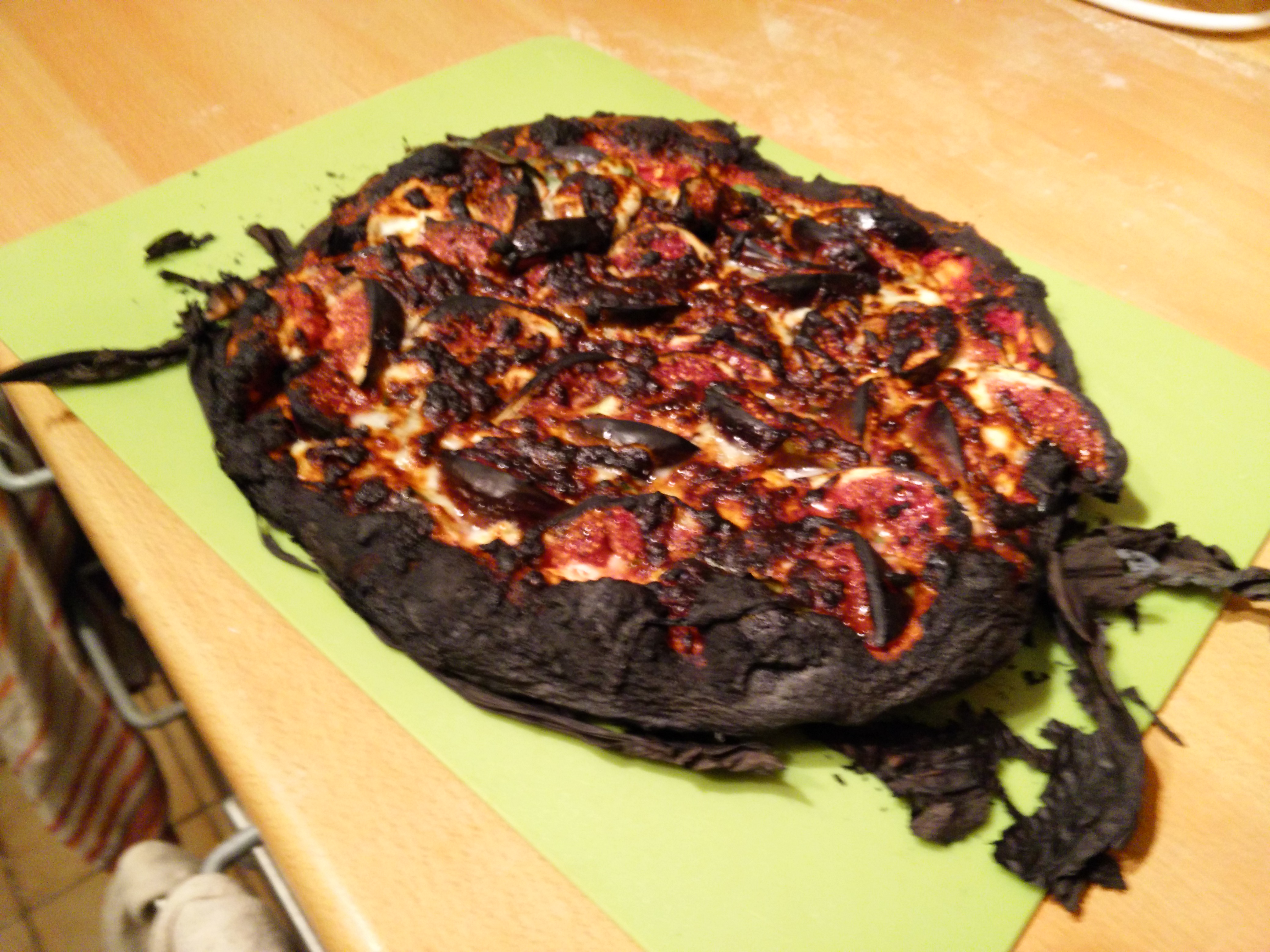 In goes the pizza. On parchment paper… yeah that got burnt up pretty quickly – oops.