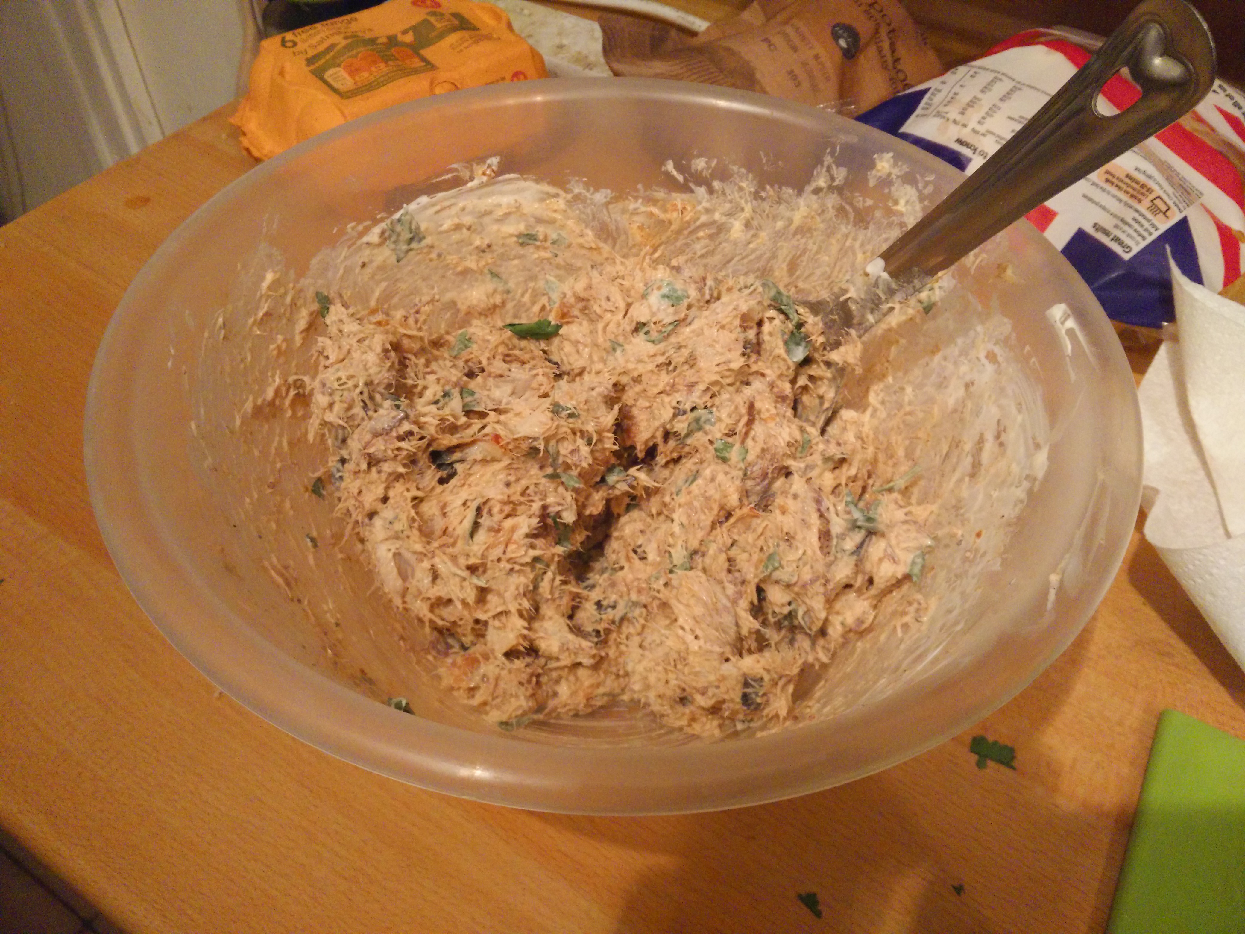 It starts wth smoked mackerel, creme fraiche, parsley and seasoning.