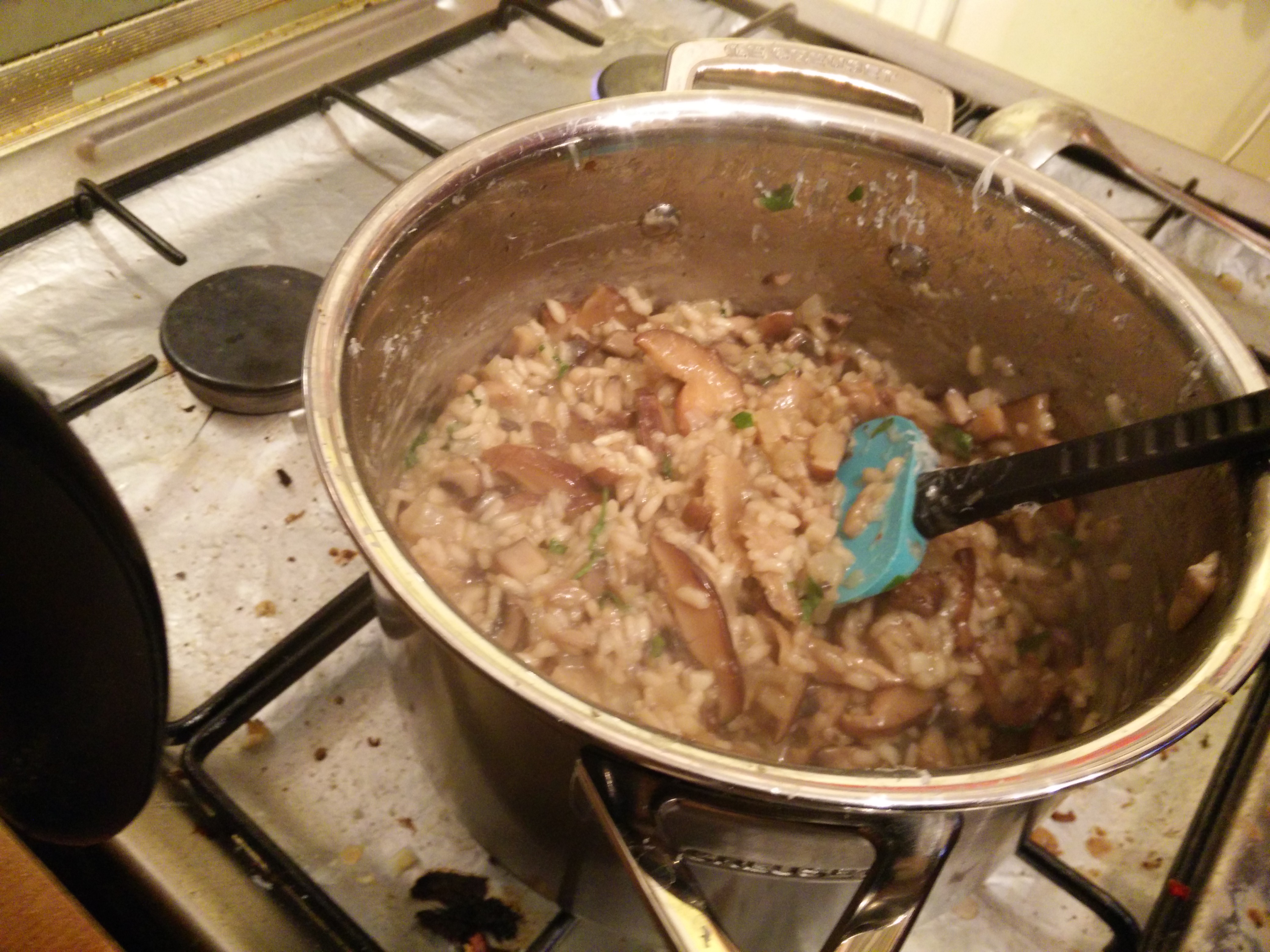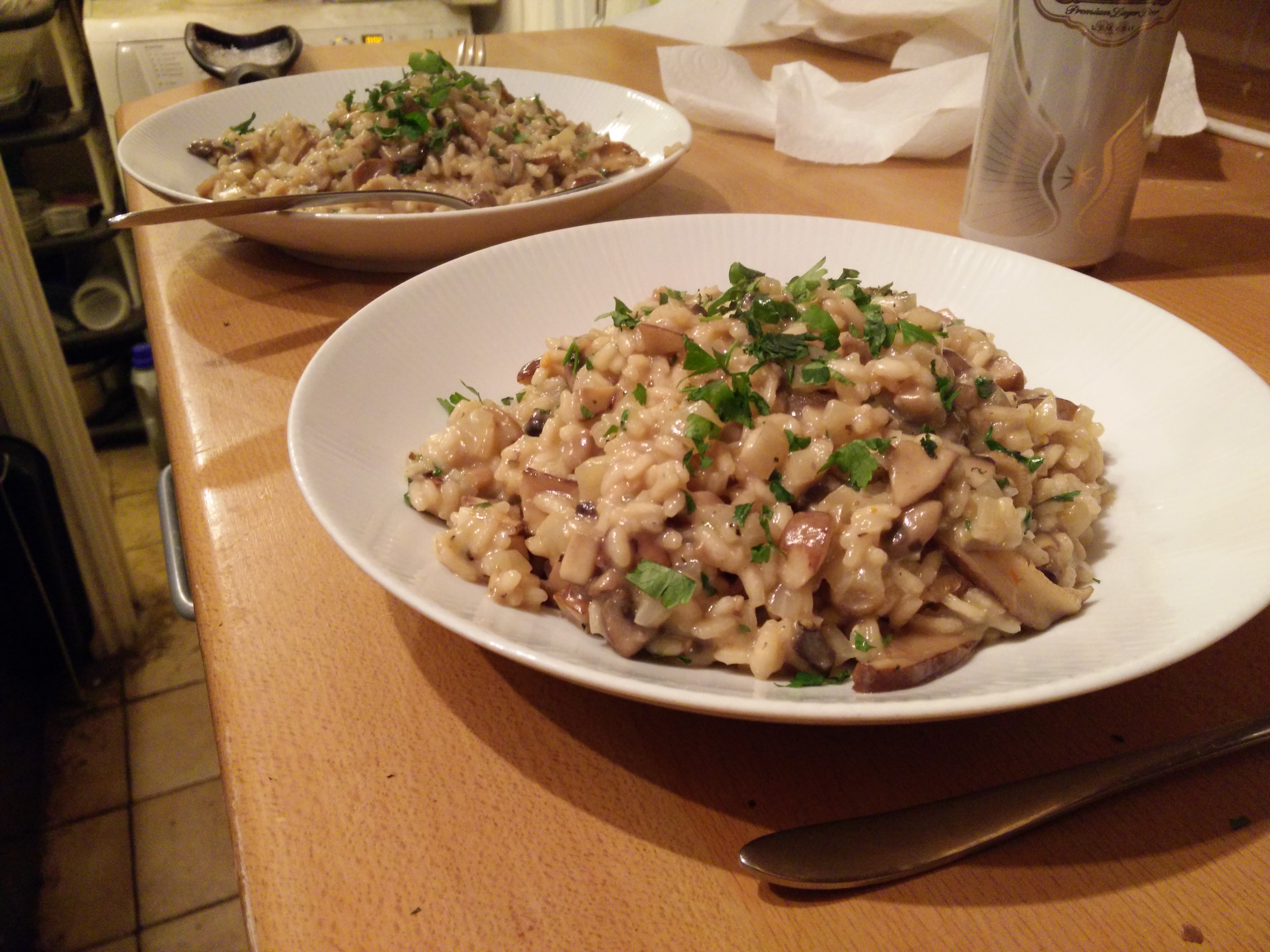 Soph does a risotto as a midweek meal. For me… I’ve never done it and it’s all a bit scary. So today I confronted my fears: mushroom risotto from BBC Good Food.