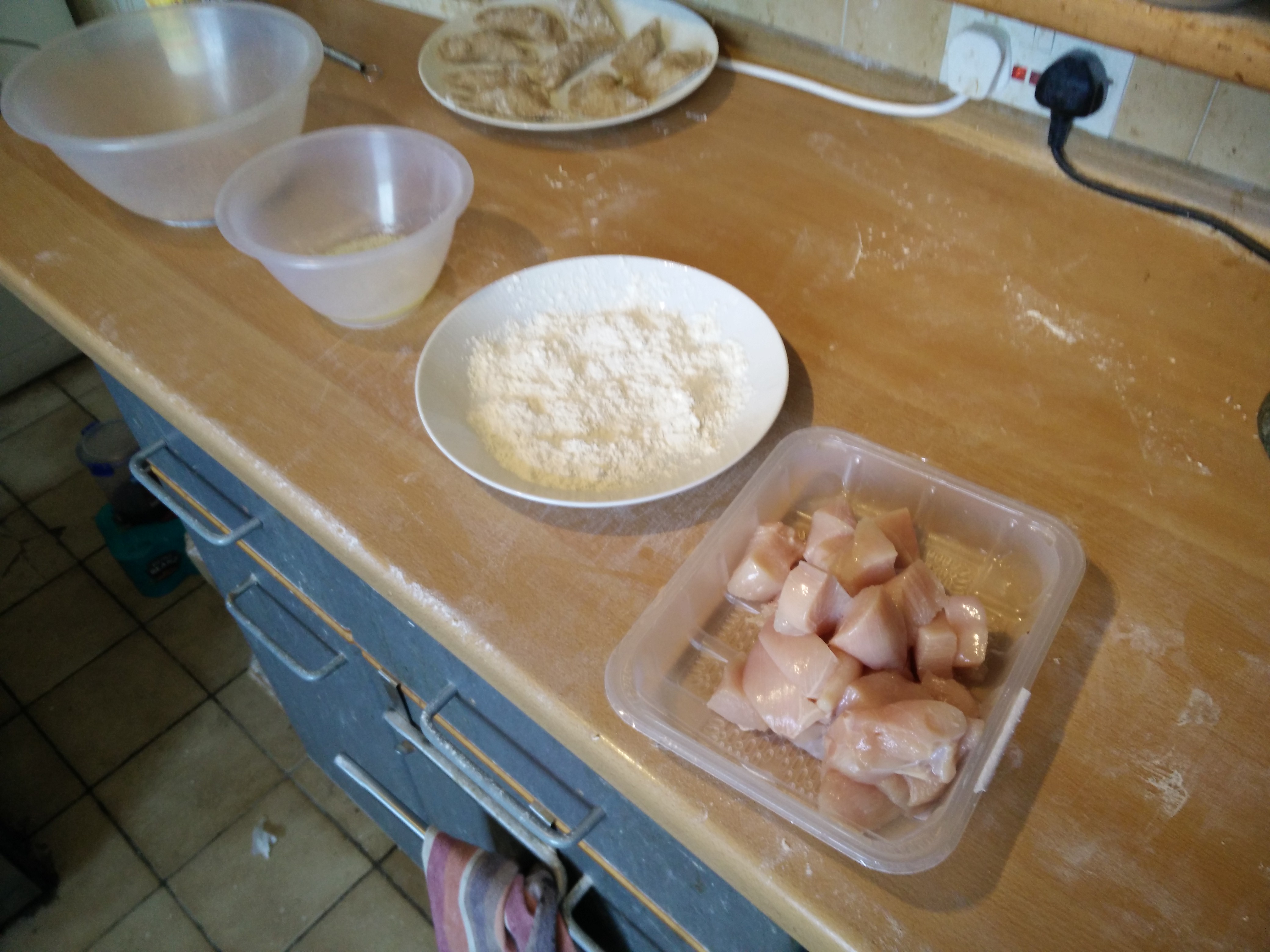 Then the chicken gets coated.
