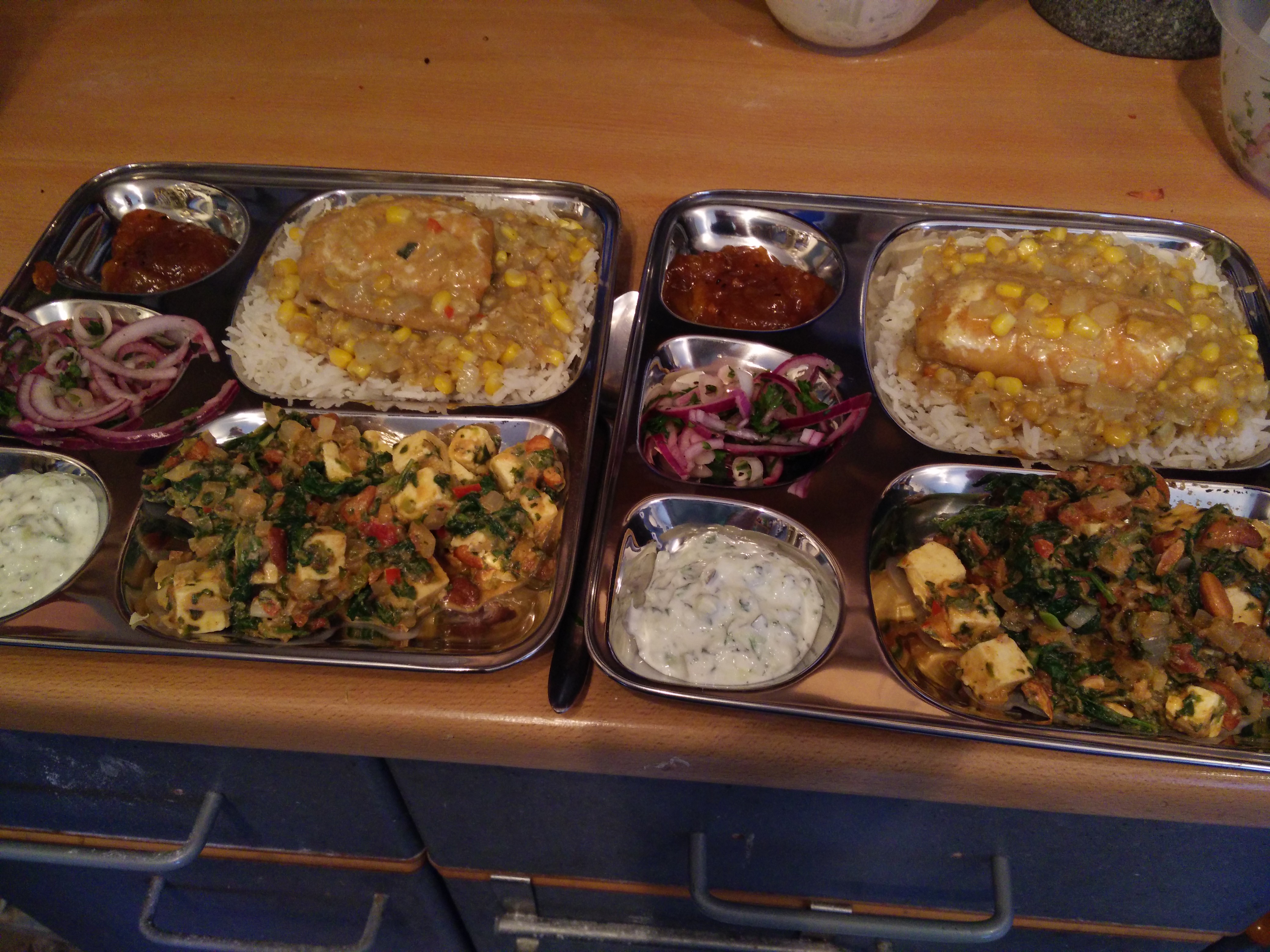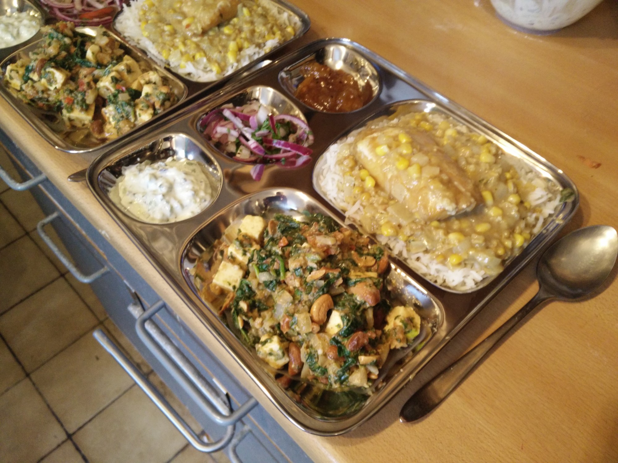 Mmmm really nice! Not very spicy, despite all the spices and chillies, but we assume the creams and tomatoes and things offset it. Very filling with the fish and nuts and cheese. Oh and the paneer doesn’t have much taste – kinda like tofu but without the weird texture. So: when a recipe calls for tofu I might substitute paneer!
